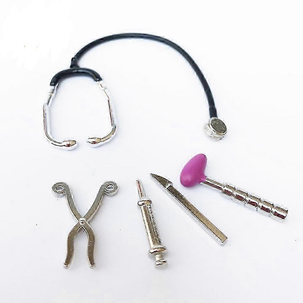 Miniature 5 Pieces Stethoscope Set Pretend Equipment for 1/12 Dolls House Life Scenes Room Items Accessories