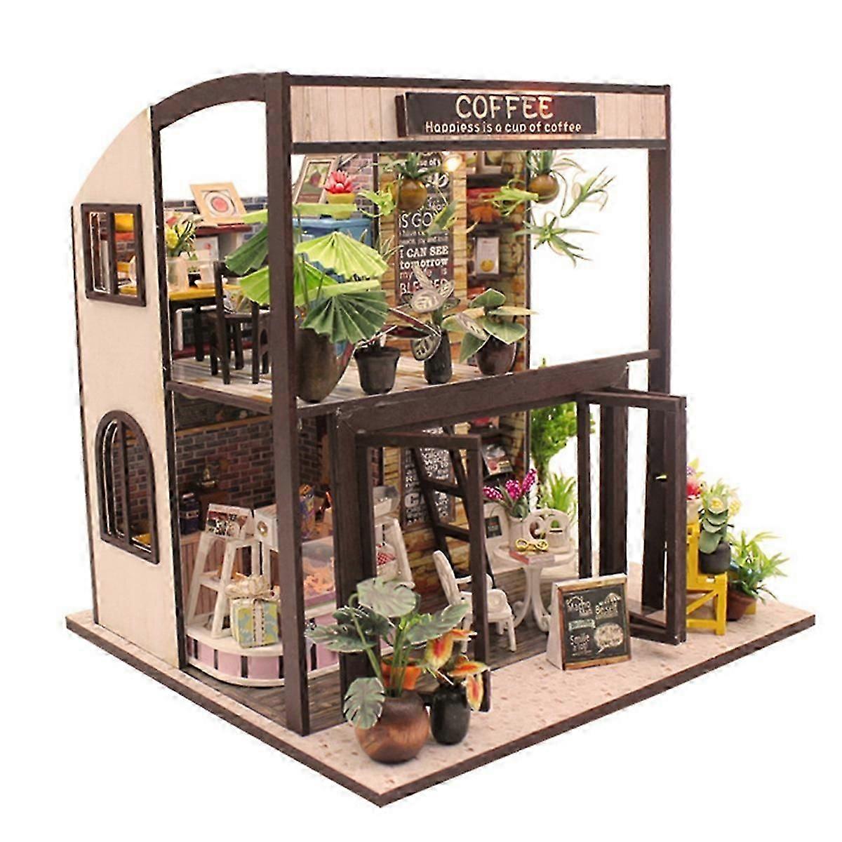 Miniature DIY Coffee House Kit DIY Kit Desk Bookshelf Decoration for Kids Adults Idea Gift