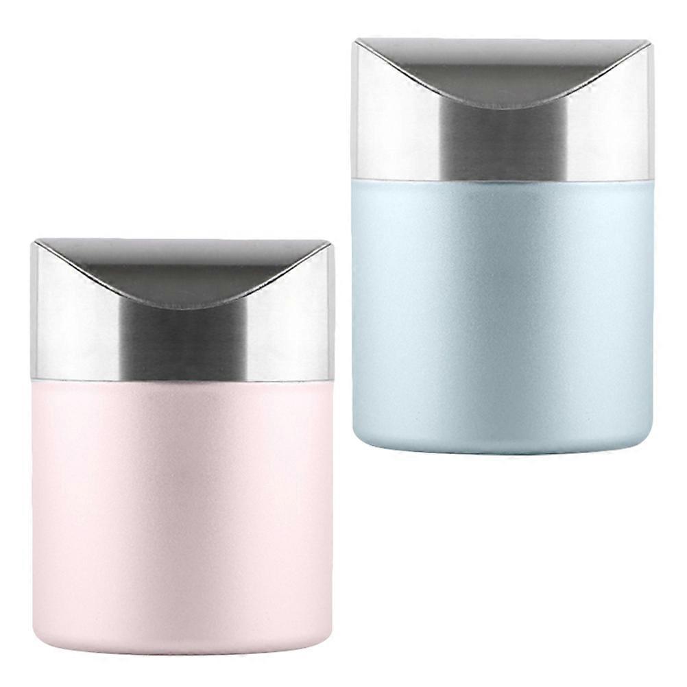 Mini Desk Bin Waste Storage Shake Cover Convenience Family Members Use Blue Color 2Pcs