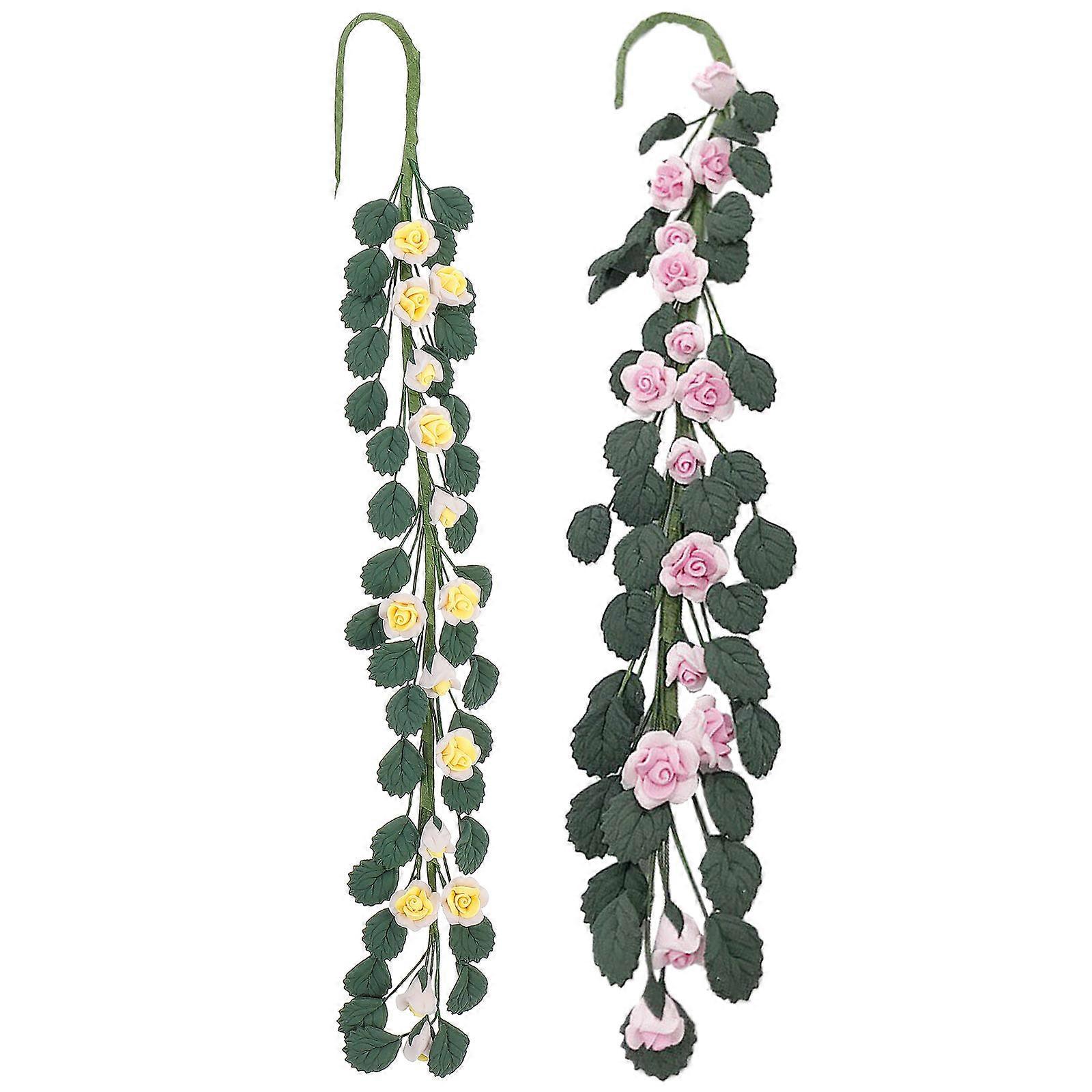 Mini Dollhouse Garland 2Pcs Flower Shaped Artificial Flower String Holiday Village 22.00X3.00X1.00CM DIY