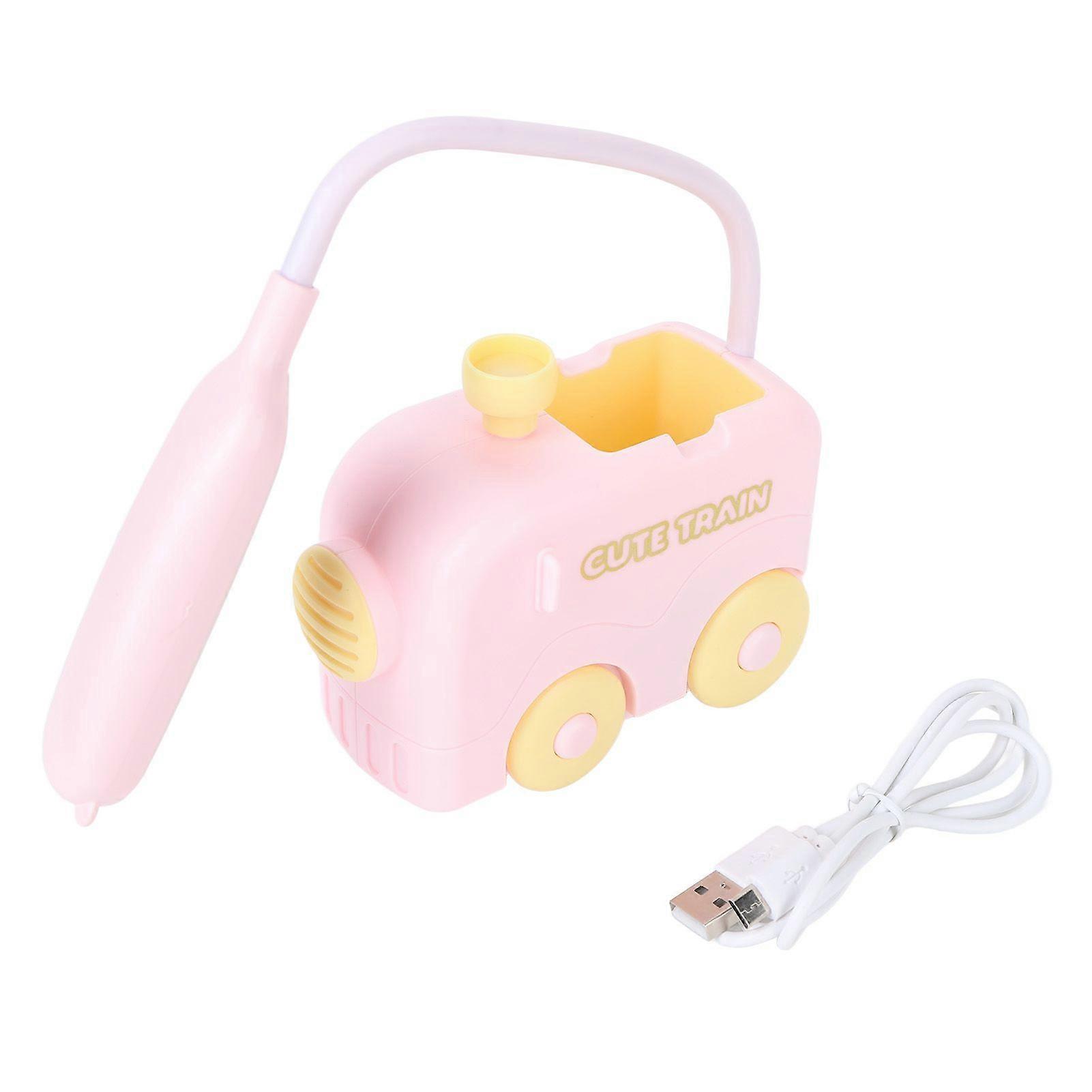 Mini Train LED Bedside Lamp Eye Protection Study Reading Light USB Charging with Pen Holder for Children Pink