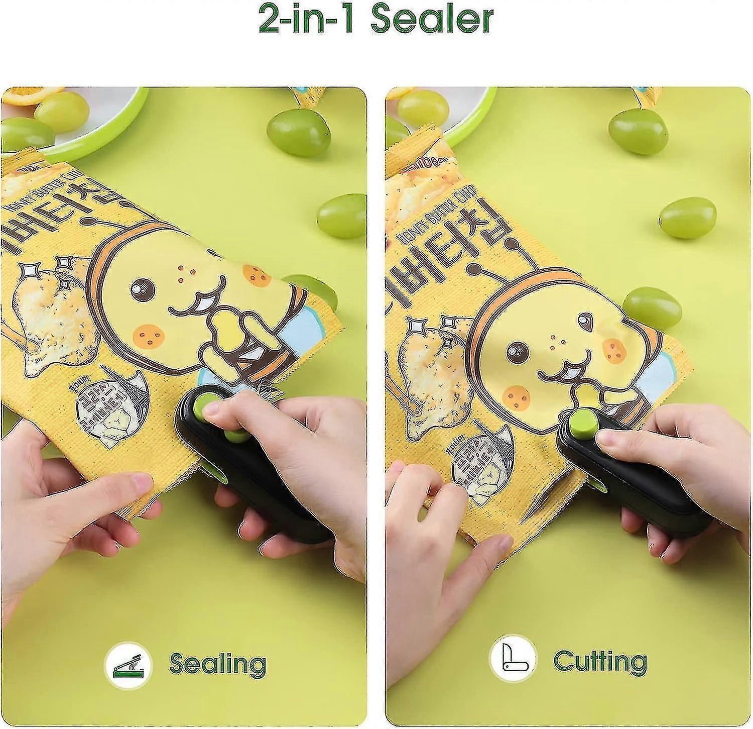 Mini Bag Sealer, 2 In 1 Heat Sealer For Snacks, Rechargeable Handheld Plastic Bag Resealer, Portable Vacuum Bag Sealing Machine