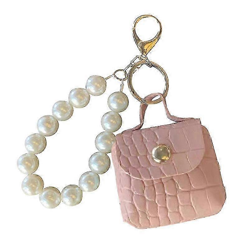 Mini Pearls Bag Pendant Women Leathers Keychains Mini Earphone Storage Bag Keyrings Car Keys Chain for Woman Girls Teens