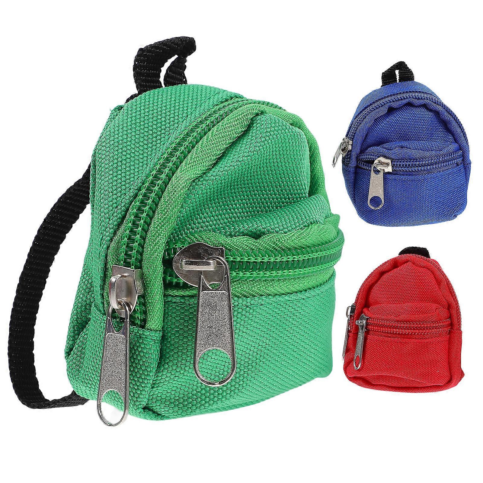 3pcs Miniature Doll Backpacks for Mini House Decoration – Realistic Tiny Decorative Ornaments in Blue, Red, Green for Dollhouse and Desktop Display