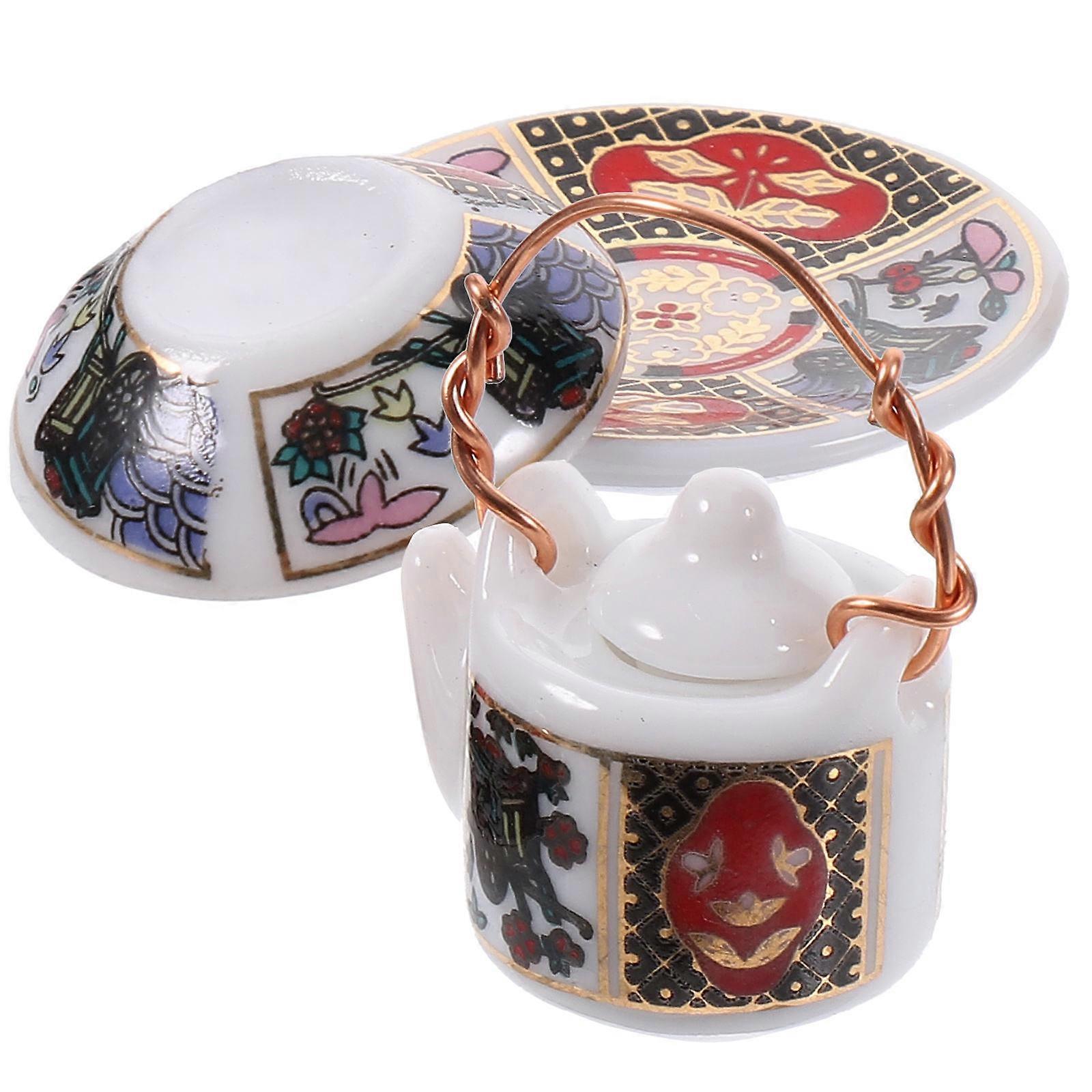 Mini House Tea Set Miniature Model Retro Toy House Enhancement 2.8X1.9X1.8CM 1Set
