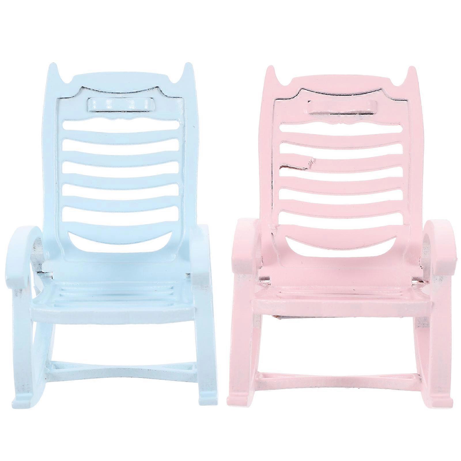 Mini House Rocking Chair Model Blue Dollhouse Miniatures Suitable For Collectors And Children Photography Prop 2Pcs