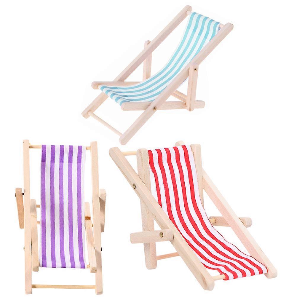 Mini Beach Chair Doll House Furniture Set of 3 Assorted Colors for Decoration Miniature Scene Wood