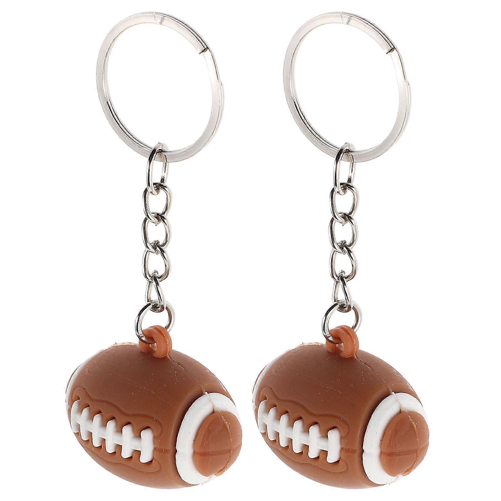 Mini Football Keychain 2Pcs Creative Sports Boys Backpack Accessories Brown Rubber Design