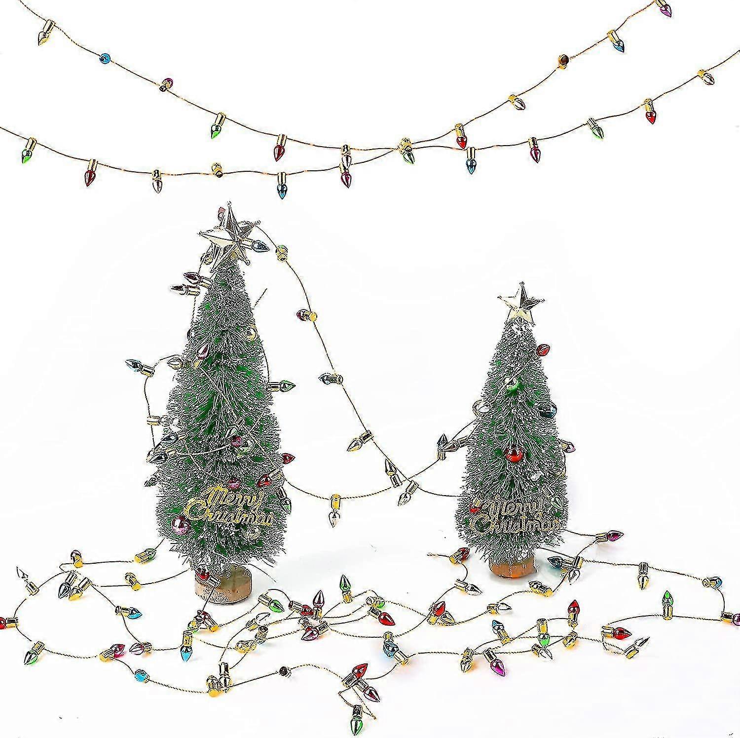 Mini Bottle Brush Christmas Lights Fake Decor Tabletop Jewelry 2pc Green