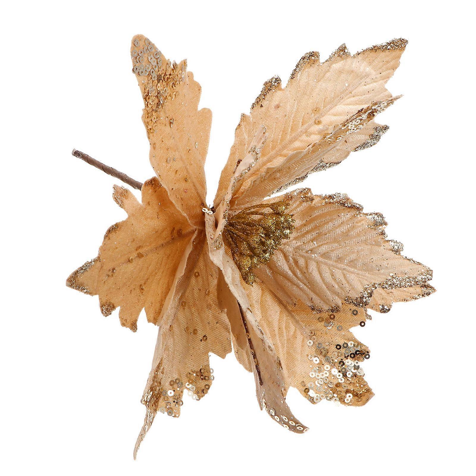 Mini Poinsettias Crafts Artificial Poinsettia Stems Golden 28X16CM Sequins Lint Iron Wire DIY Decorative Flower Branches 1Pc