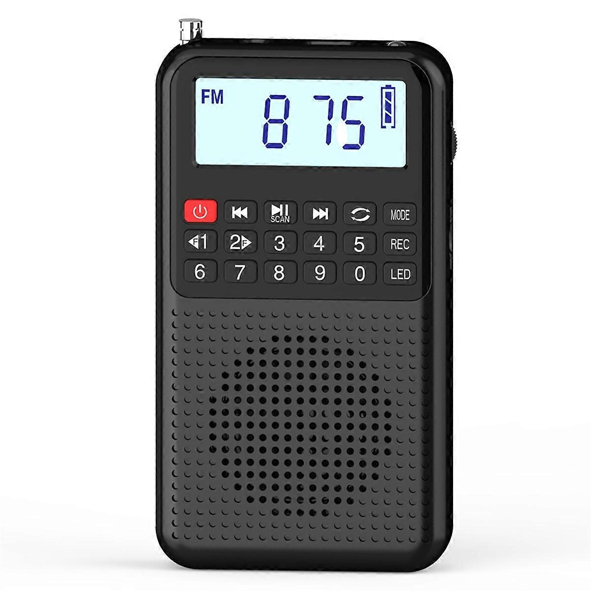 Mini Portable Pocket AM FM Radio MP3 Small Radio with Sleep Timer SD Rechargeable AM 9K 10K Dual Mode Switching Black