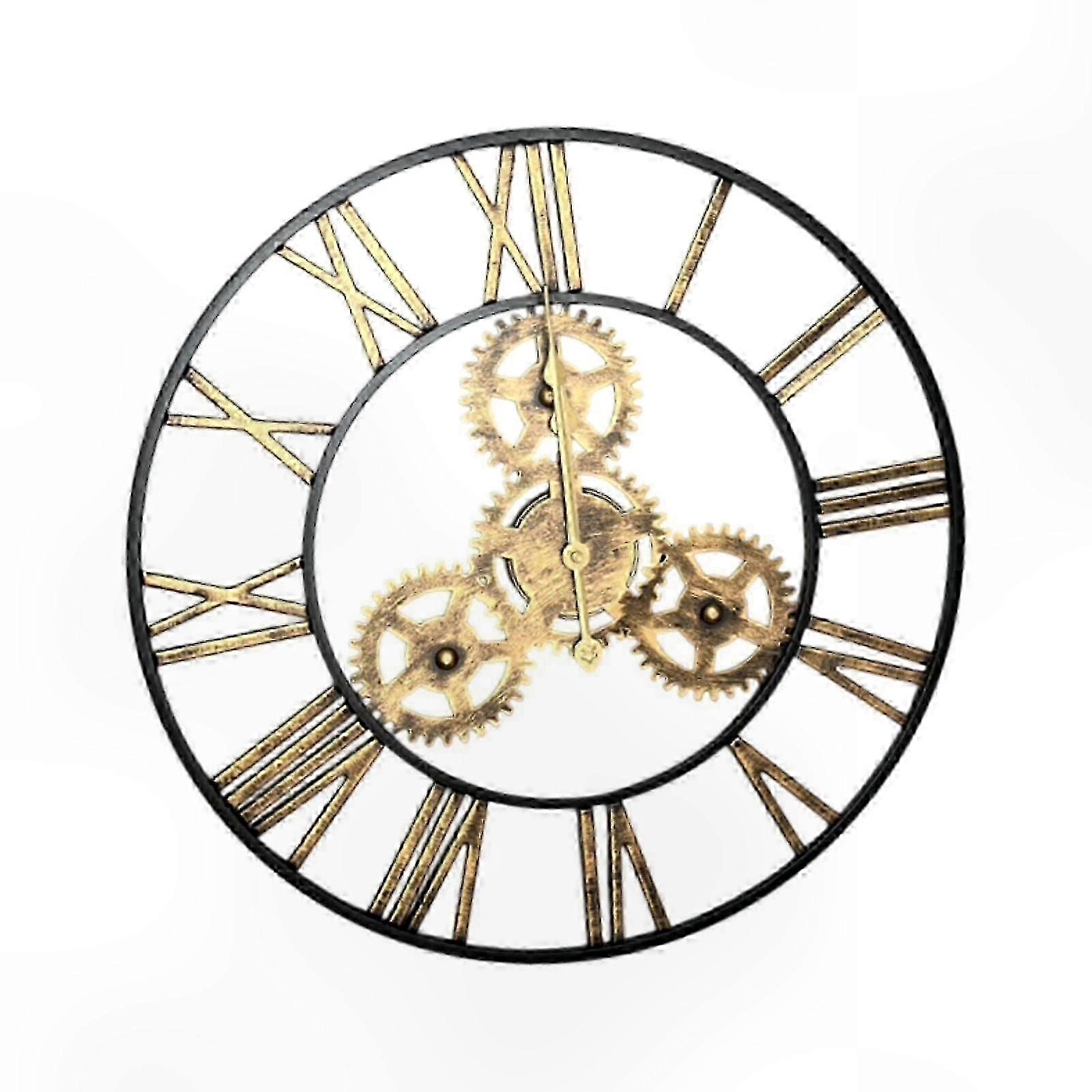 Minimalist Vintage Design Metal Wall Clock with Moving Gears for Kitchen or Fireplace, 40 cm Size