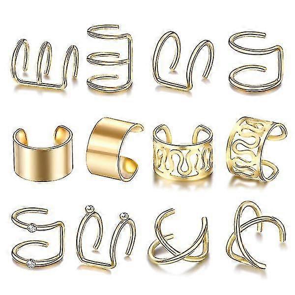 Minimalist Double-layer Wrap-around Non-perforated Ear Clips (6 Pairs Of Gold)