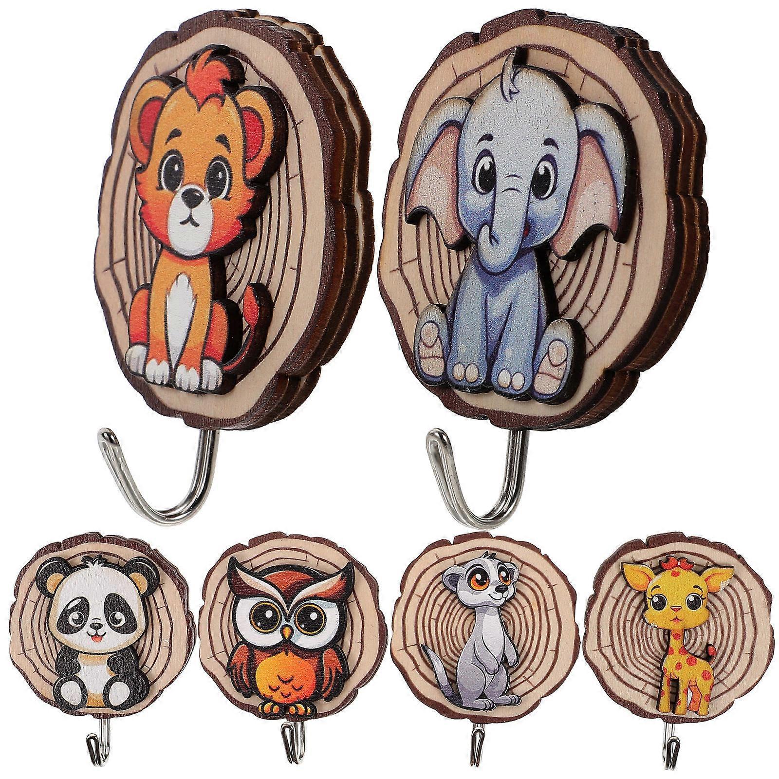 Minimalist Modern Style Coat Hooks Wood And Iron Material Cartoon Animal Shape For Various Occasions 6Set