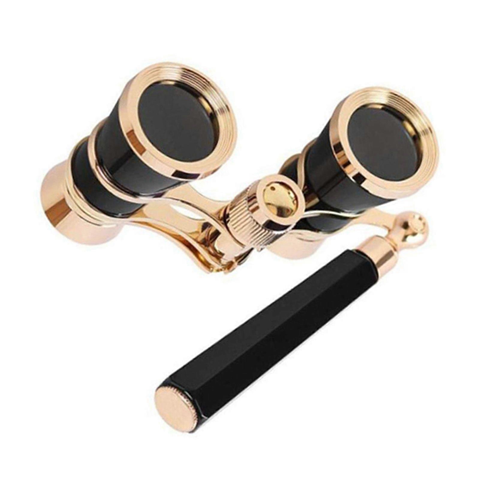 Feature:1. 1. Optical lens: Using optical lens, the magnification is 3x25, with high definition, long visual range and perfect observation effect.2. 2. Foldable handle: The binoculars have a foldable handle, and the handle can also be extended, which is convenient to use, and can be easily put into your pocket for easy storage.3. 3. style: The binoculars have an aristocratic classical style, which can not only show your temperament, but also can be used as a gift for your friends, family members, or lovers.4. 4. Small and portable: The binoculars are small in size and come with a storage bag, which not only protects the binoculars, but is also easy to carry.5. 5. Applicable occasions: Mini binoculars are suitable for watching operas, performances, tourism, large-scale concerts, bird watching, animal watching, wildlife watching, terrain observation, scenery appreciation, etc.Specification:This product is a mini and exquisite binoculars with gold-plated all-metal design, which is very suitable for going out to watch shows, travel, and observe animals and plants.Features:1. Optical lens: Using optical lens, the magnification is 3 x 25, with high definition, long visual range and perfect observation effect.2. Foldable handle: The binoculars have a foldable handle, and the handle can also be extended, which is convenient to use, and can be easily put into your pocket for easy storage.3. style: The binoculars have an aristocratic classical style. It can not only show your temperament, but also can be used as a gift for your friends, family members, or lovers.4. Small and portable: The binoculars are small in size and come with a storage bag, which not only protects the binoculars, but is also easy to carry.5. Applicable occasions: Mini binoculars are suitable for watching operas, performances, tourism, large-scale concerts, bird watching, animal watching, wildlife watching, terrain observation, scenery appreciation, etc.Note:1. Due to manual measurement, there will be a 1-2 mm error in the size. Thanks for your understanding.2. Due to different light conditions and different monitors, item color displayed in photos may be showing slightly different from real object.Specifications:Color: White / Gold / Black ( Optional )Material: Metal + Optical LensMagnification: 3x25Prism System: GalileoObjective Lens Diameter: 25mmExit Pupil Diameter: 8.3mm1000m Visible Range: 115mViewing Angle: 6Focusing System: Medium FocusHandle Length ( Extendable ): 10.5cm / 4.13in~16.5cm/6.50inItem Size ( Without Handle ): 10*3*5.5cm / 3.94*1.18*2.17in ( L*W*H )Packing Size: 11*8*4.5cm / 4.33*3.15*1.77in ( L*W*H )Net Weight: 175g / 6.17ozGross Weight: 210g / 7.41ozPackage List:1 * Binoculars1 * Cleaning Cloth1 * Storage Bag1 * Instruction Manual ( English & German )Package List:1 * Binoculars1 * Cleaning Cloth1 * Storage Bag1 * Instruction Manual ( English & German )