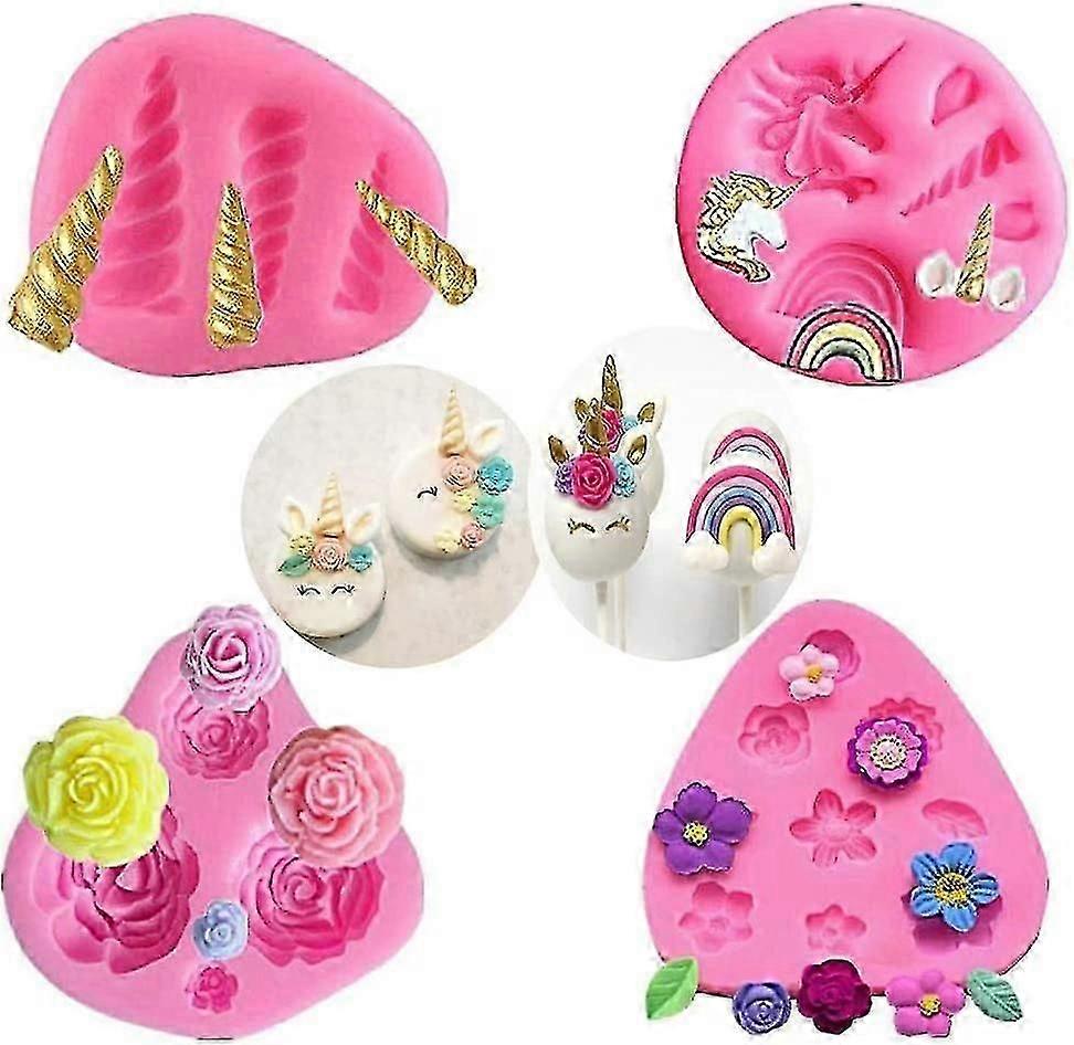 Mini Unicorn Silicone Mold, Unicorn Ears Horn Rain Flowers And Leaves, Fondant Chocolate Mold Cupcake Toppers For Unicorn And Kids Birthday (set Of,72