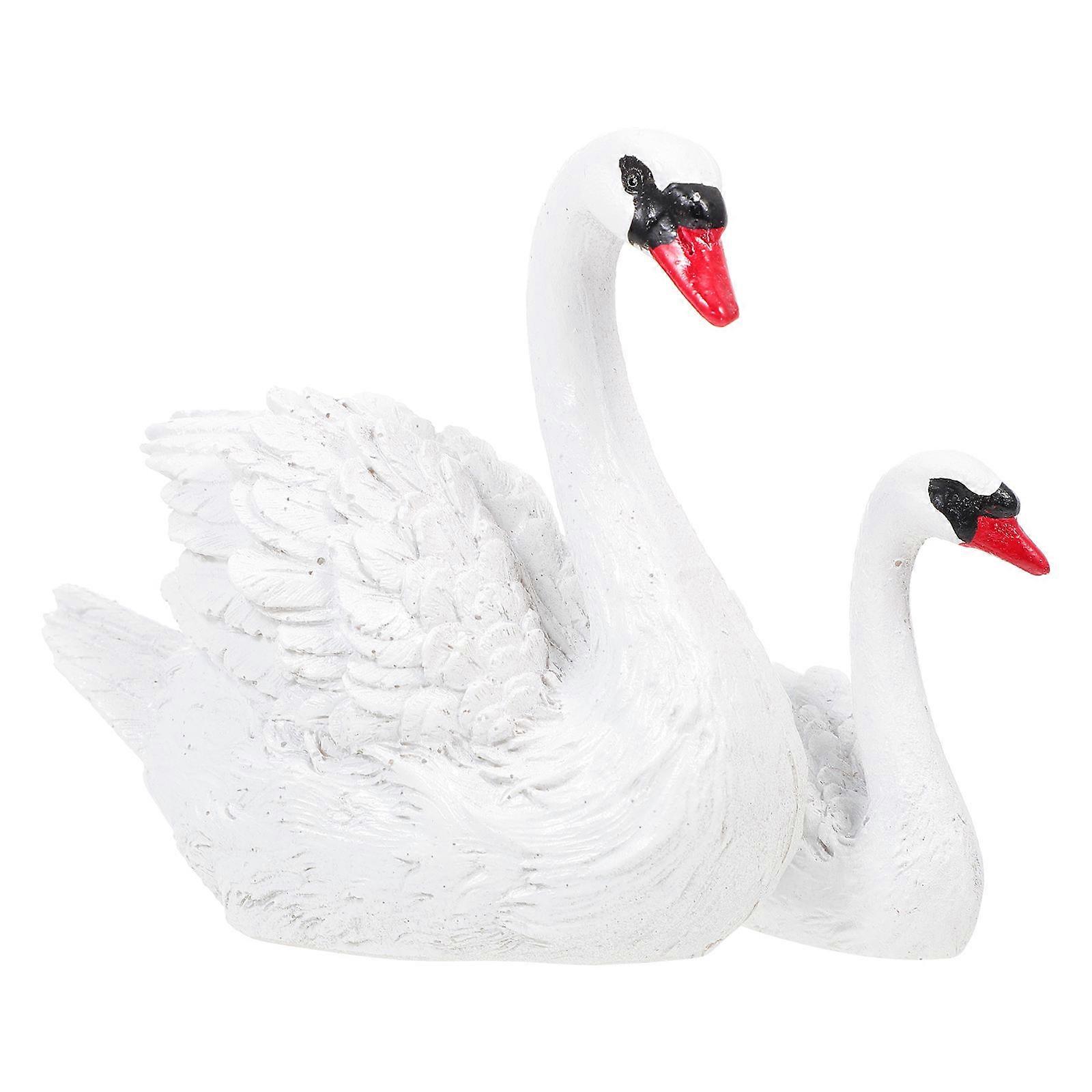 1 pair of Mini Resin Swan Decors Swan Model Ornament Simulation Swan Statues