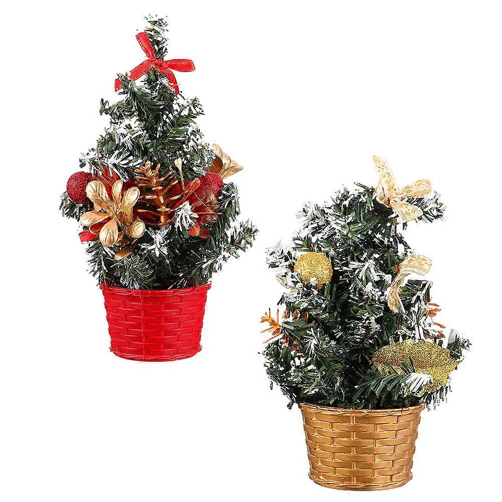 Mini Artificial Christmas Trees Tabletop Decoration Gold Red Xmas Tree Home Office Restaurant Festive Ornament 2pcs