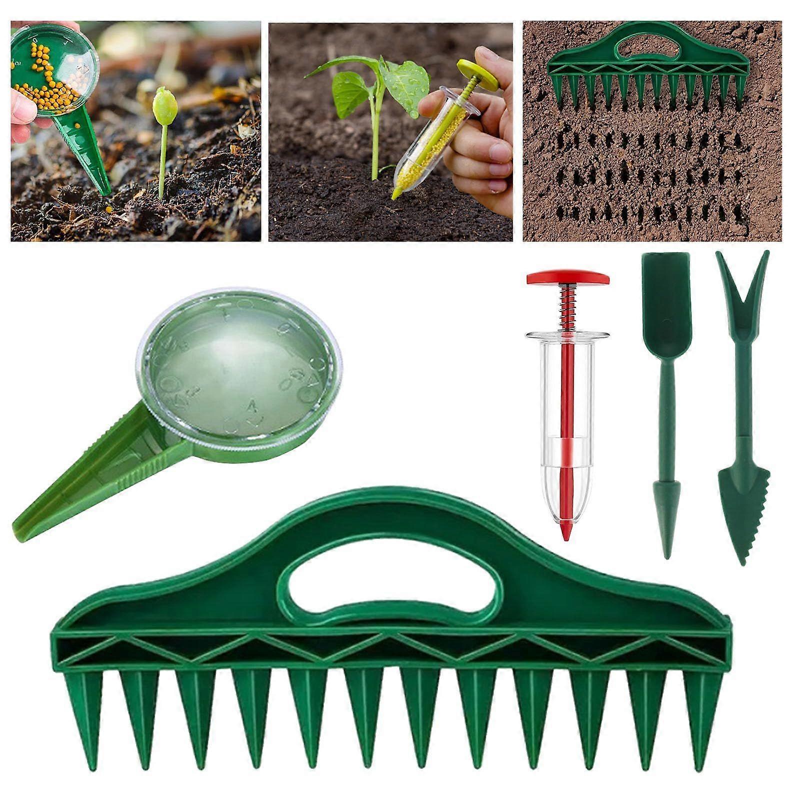 [Efficient Seed Spacing Tool] Our seed spacing garden tool allows you to sow accurately and evenly while creating enough space for plants to grow. Effectively control seed spacing and increase crop yields. [Versatile Sowing Kit] You will receive a mini seeder, a hole punch, a seedling stand, an efficient seeder, and a seed spacing garden tool with five settings - more than enough for your daily gardening needs. [Various Seed Hole Spacing Options] Our garden tool allows you to choose different seed hole spacings for different seeds. So you can grow beautiful plants with less time and effort! [Practical Design] Made of high-quality plastic, it is durable and reusable. The ergonomic handle provides a comfortable grip and makes digging easy. The unique hexagonal pyramid design prevents soil from sticking to the machine. [Wide Applications] Can be used for digging, planting, loosening, aerating, and transplanting. It can be used to plant peppers, tomatoes, peas, leafy greens, carrots, lettuce, broccoli, radishes, and other vegetables.