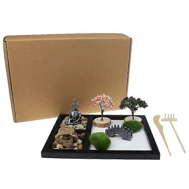 Mini Zen Garden Sand Tray Set 3 Grids Statues Zen Garden Set Sand Bridge