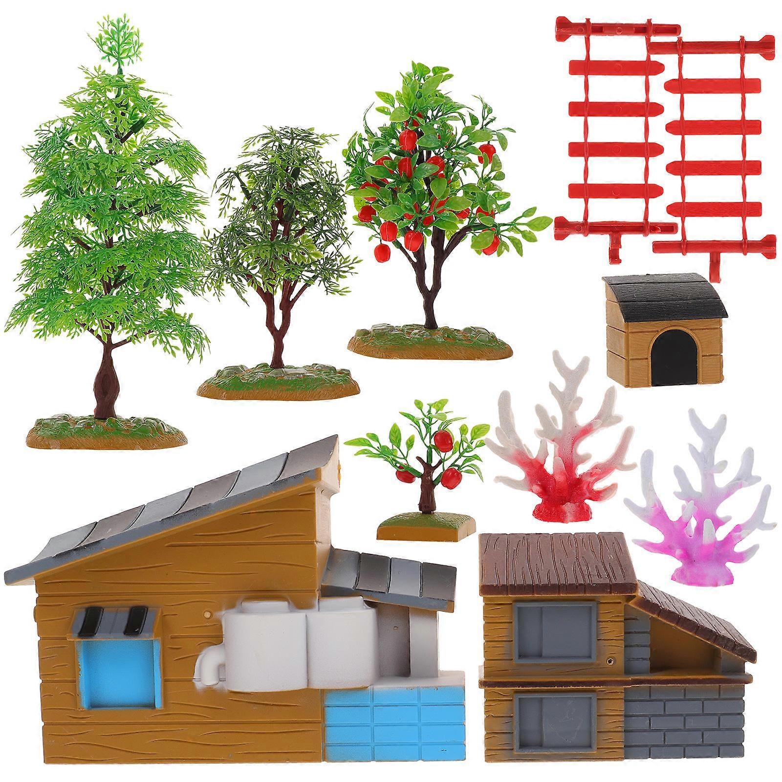 Mini Farmhouse Mini House Garden Props for Living Room Kids Toy Assorted Color Made of Durable Pvc 1 Set