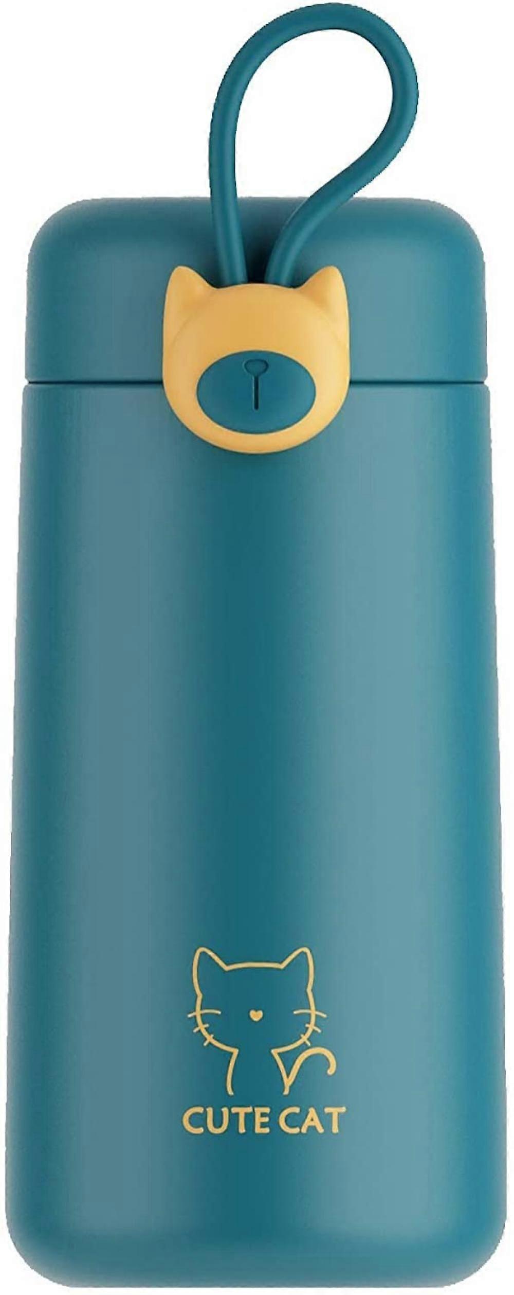 Mini irin Kedi Paslanmaz elik Termos Su iesi Tanabilir Vakum iesi Cebi aydanlk Bayan Termos Bardak (Kapasite: 270ml, Renk: Yeil)