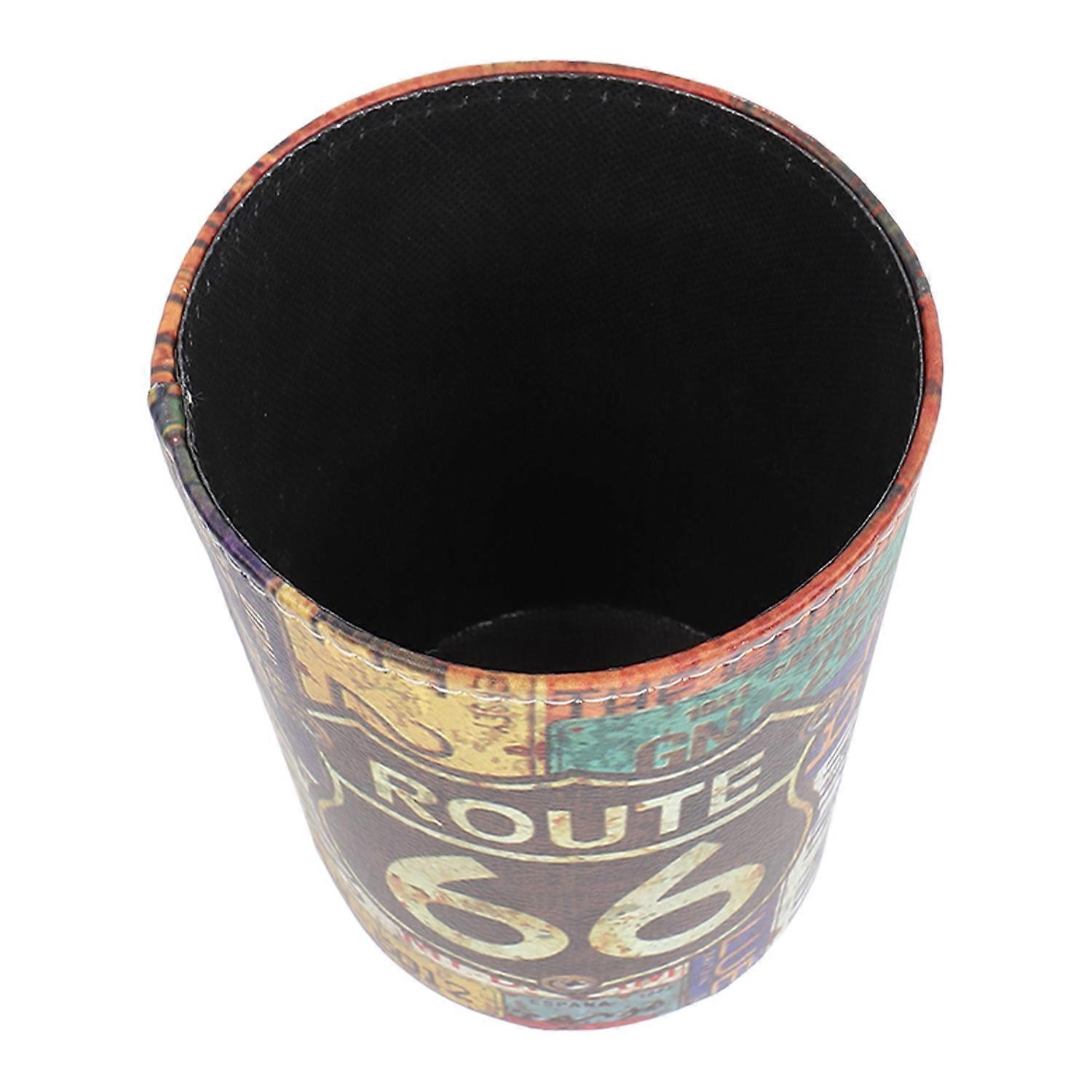 Mini PU Leather Trash Can Vintage Pattern Desktop Trash Can for Massage Shop Living Room