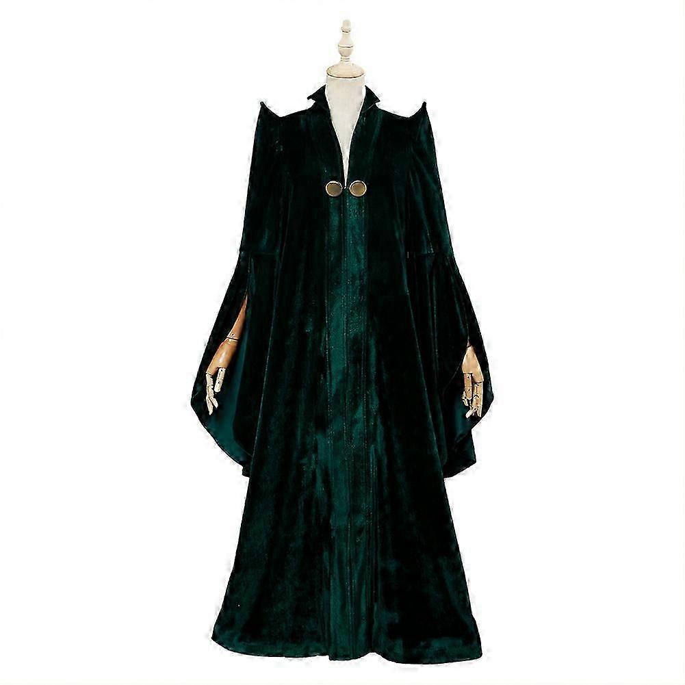 Professor Minerva McGonagall Cosplay Costume Green Rope Cape Hat Wand Full Halloween Suit
