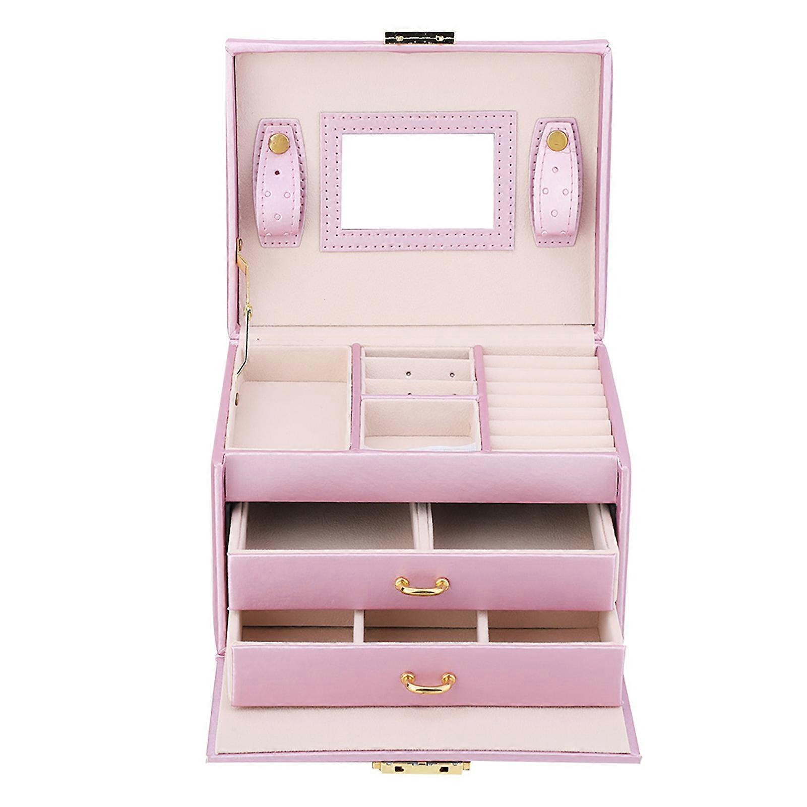 3-Tier PU Leather Jewelry Storage Box with Mirror Organizer