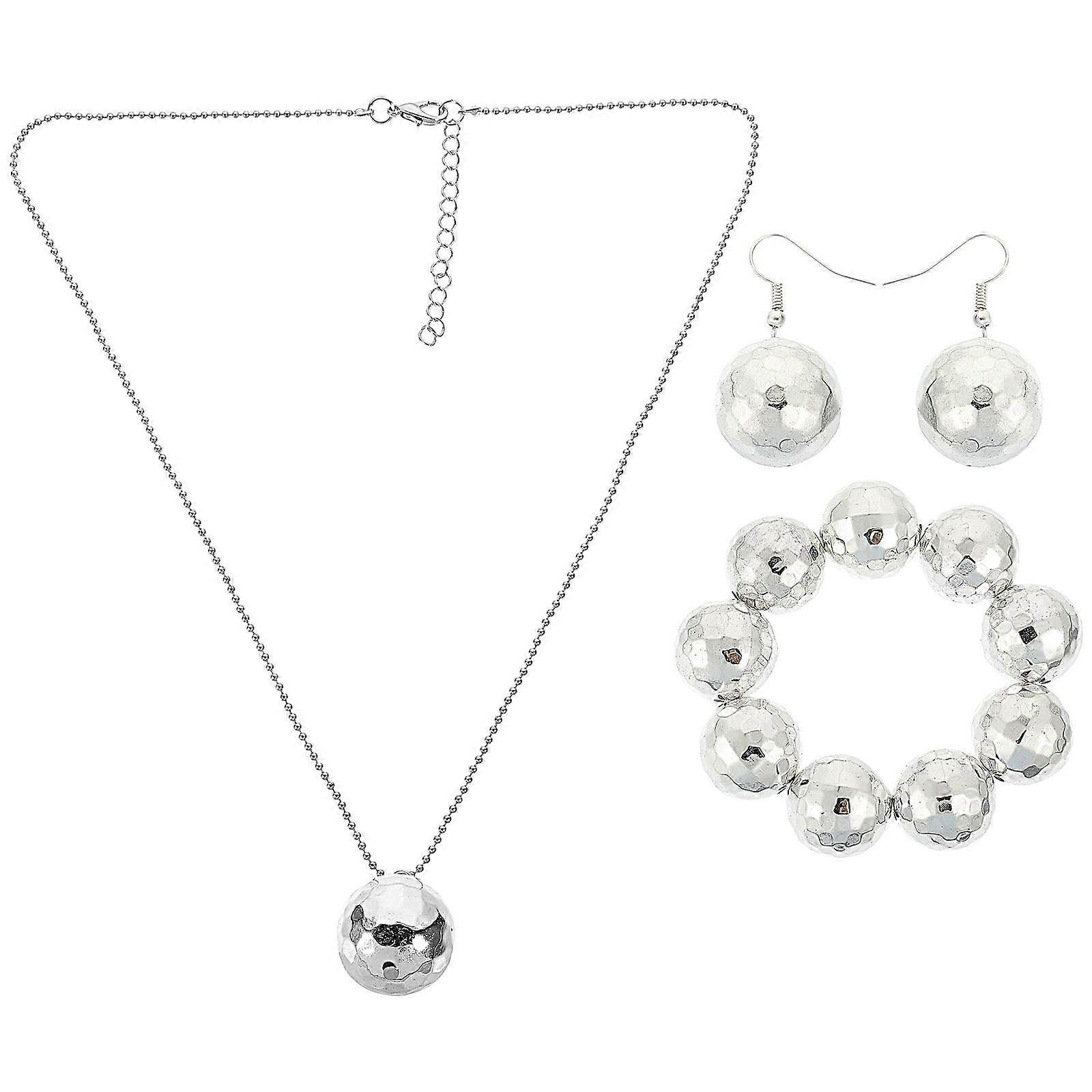 1 Set of Mirror Disco Ball Necklace Bracelet Earring Kit Decorative Jewelry Kit