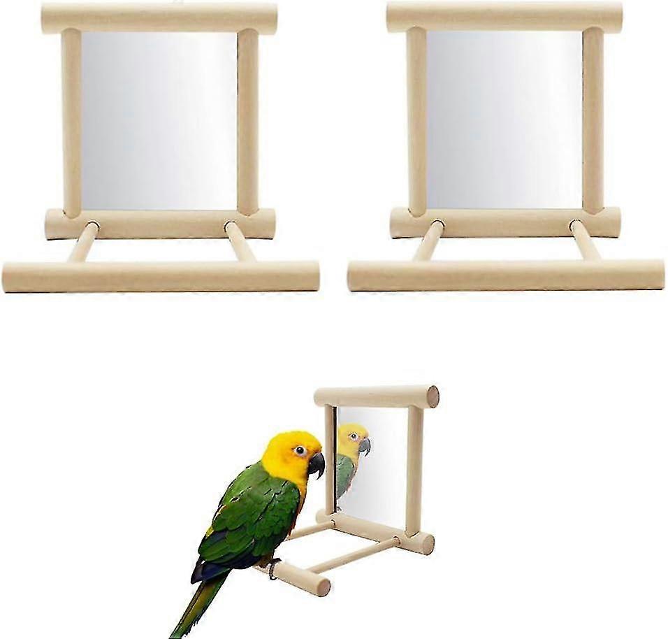 Bird Perch With Mirror, Wooden Bird Mirror With Perch, Bird Cage Perches Mirror Stand For Parrot, Parakeet, Finch, Lovebirds, Gray Macaw 10x10x10cm,2p