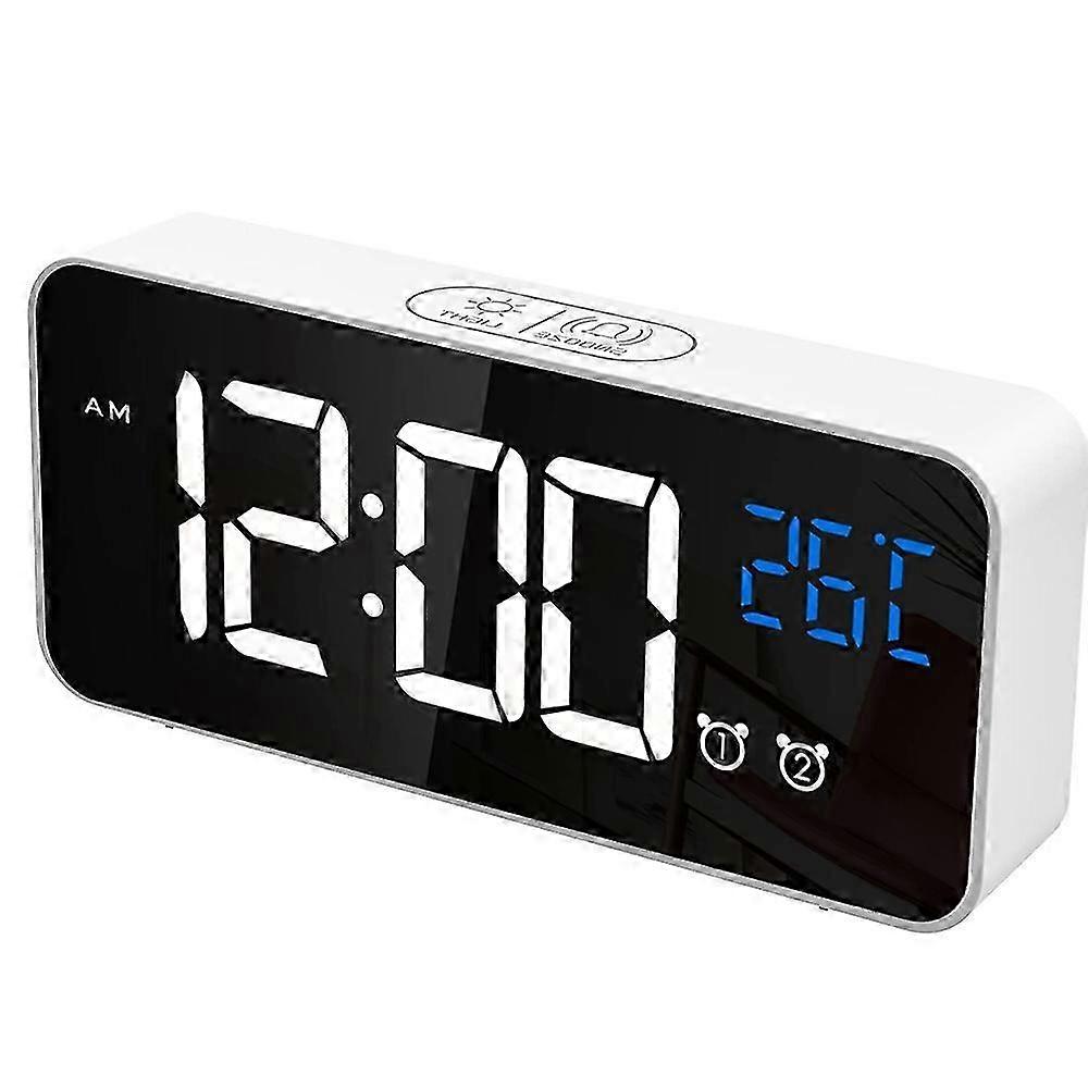Wake up to style and functionality with our Mirror Alarm Clock, blending seamlessly into your decor while offering the essentials for a peaceful morning routine.Dual Alarm Flexibility : Set two distinct alarms to accommodate your personal schedule or shared household needs. USB Charging Convenience : Keep your devices charged overnight right beside your bed. Large LED Display : Clear visibility for everyone, especially beneficial for the visually impaired. Adjustable Dimmer : Tailor the brightness to suit your preference for any time of day. Easy Operation : Intuitive controls ensure smooth and stress-free alarm setup. Note: Due to the light and screen setting difference, the item's color may be slightly different from the pictures. Please allow slight dimension difference due to different manual measurement.