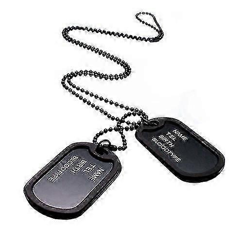 Military Army Style Black 2 Dog Tags Pendant Sweater Chain Necklace M