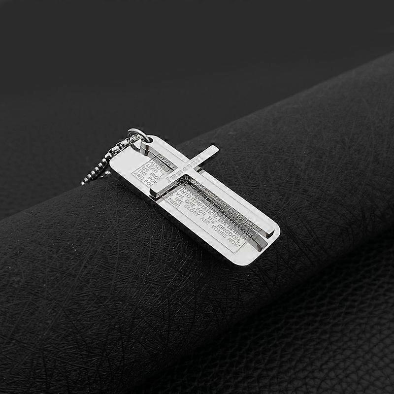 Military Style Dog Tags Cross Stainless Steel Pendant Necklace Christian Lord s Prayer Bible Verse for Men Women Charm Choker