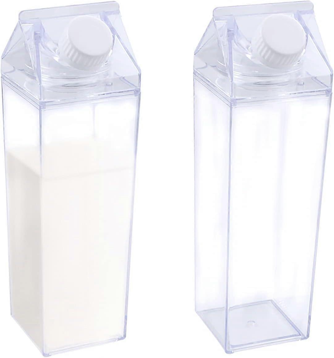 Milk Carton Water Bottle,2 Pack Clear Square Juice Refill Water Bottle,500ml Reusable Cute Container for Outdoor Indoor Travel Activities (500ML)