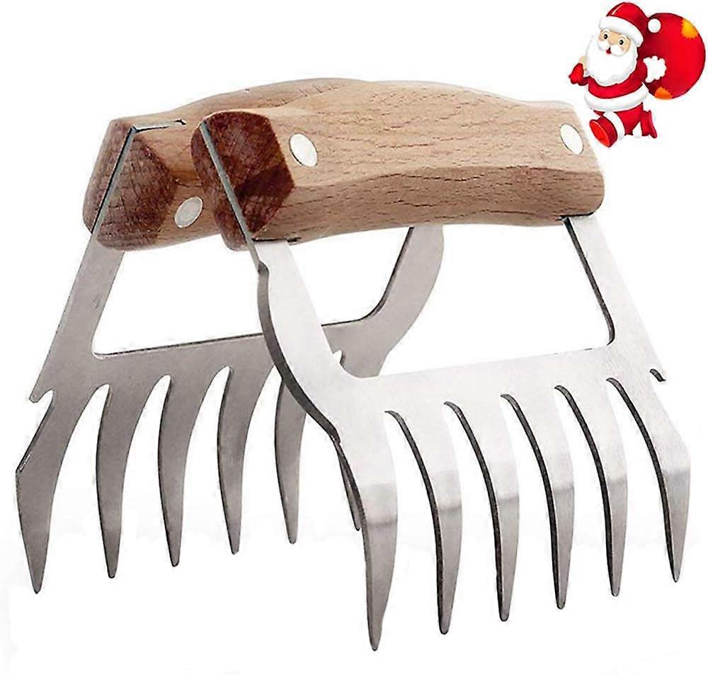 You can use this metal meat claws tool to transfer the meat to a plate to shred it. Handy little gizmos. Sharp teeth help you pick up awkward/large pieces of beef or pork. Make pulling meat a breeze. From shredding beef, pulling pork, carrying the turkey, to mixing the lettuce salad, Meat Claws with Forks can do it all.