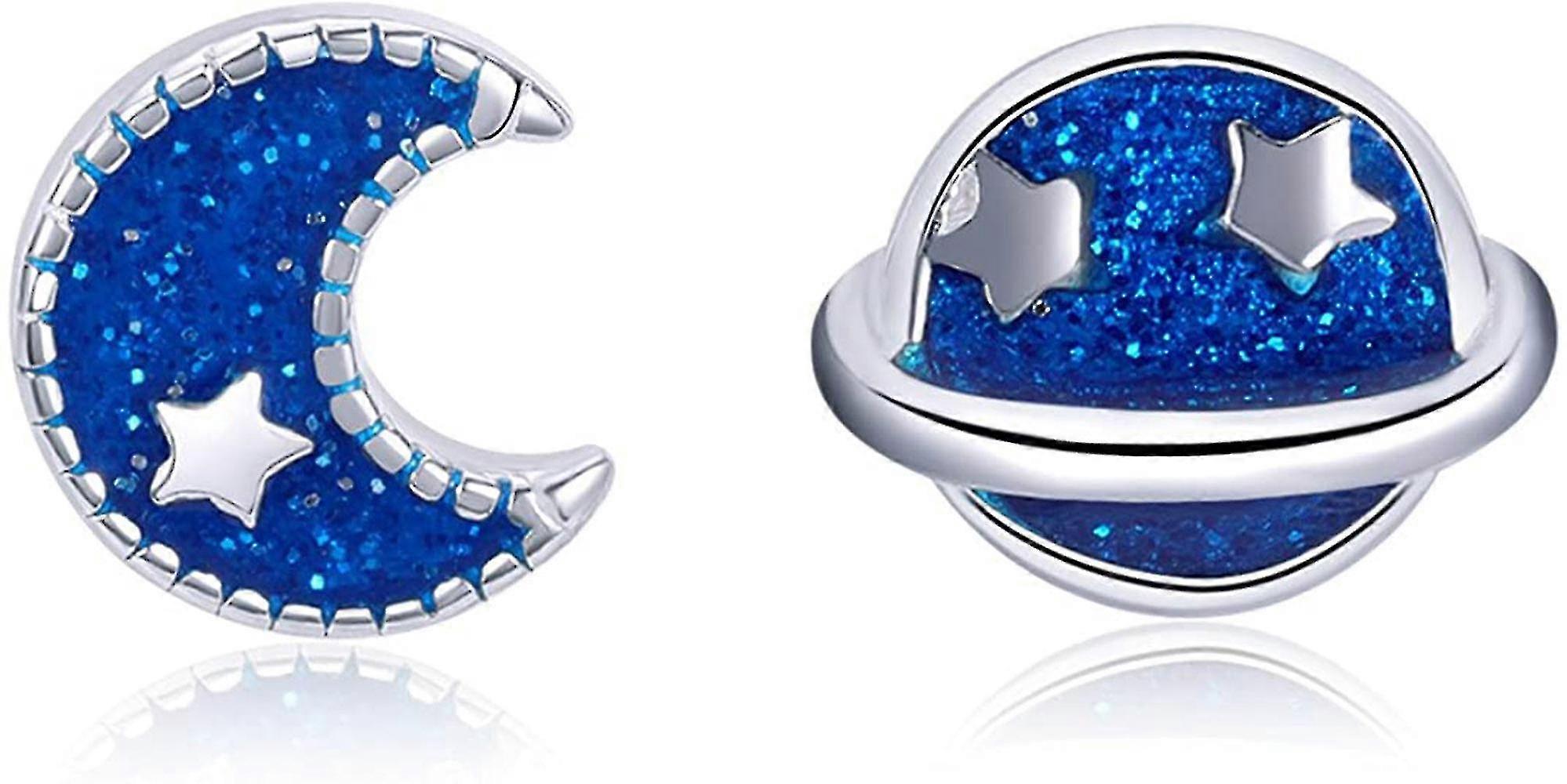 Moon Star Enamel Stud Earrings 925 Sterling Silver, Cute Small Planet Earrings Hypoallergenic Stud Earrings For Women And Girls, Thanksgiving Day-