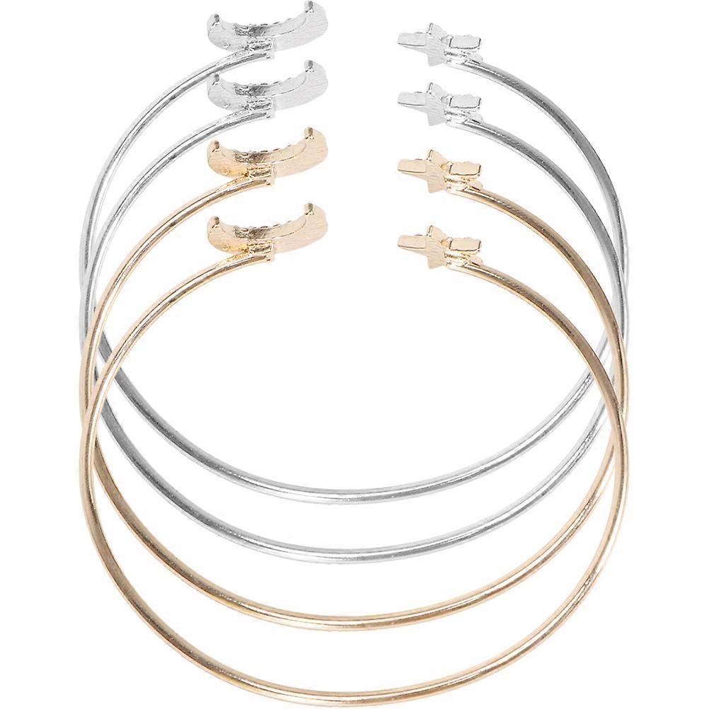 Moon Star Bangle Bracelet Fashion Design Adjustable Opening Cuff Jewelry For Women Assorted Color 4Pcs
