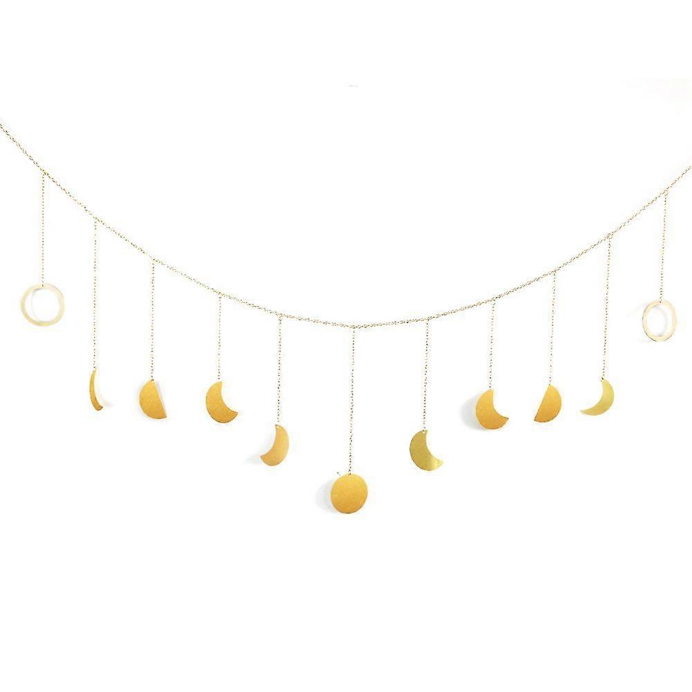 Moon Phase Wall Hanging Gold Moon Garland Decor Boho Home Decoration Shining Moon Hang Art Ornaments for Bedroom Headboard Living Room Dorm Nursery A