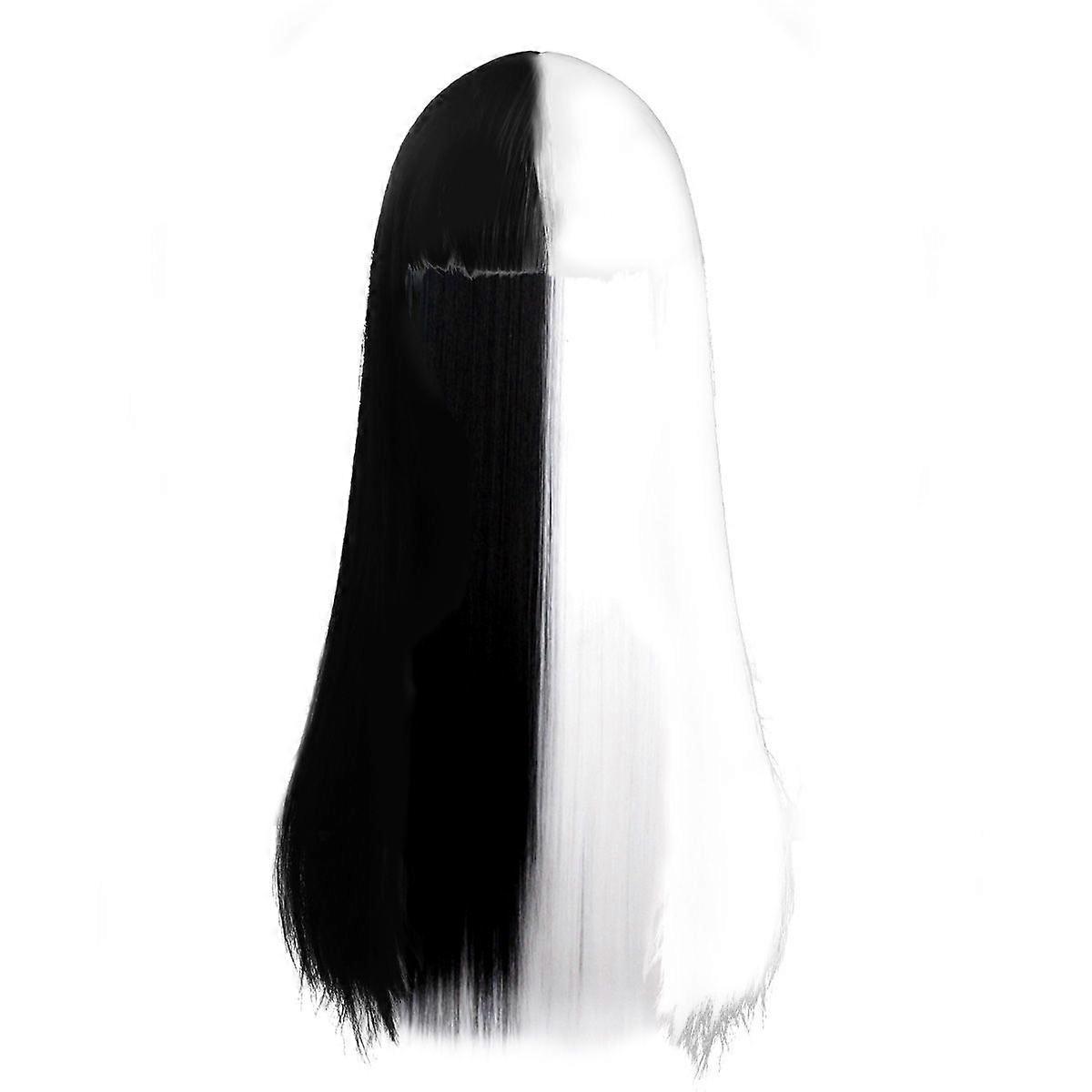 Half Black Half White Long Straight Wigs Fashion Synthetic Hair Wigs for Makeup