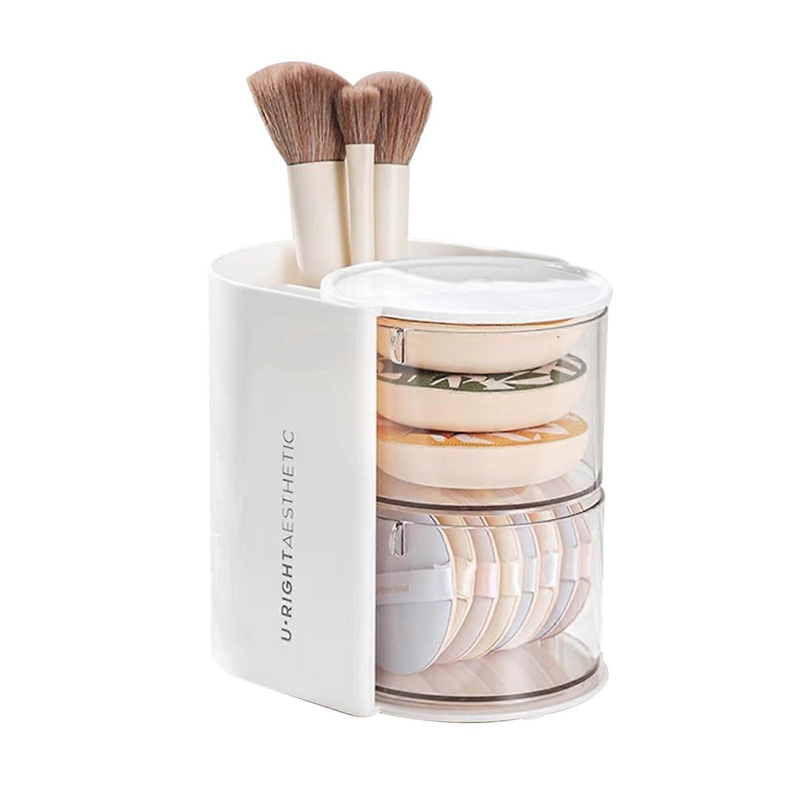- Keep order: A compact storage organizer with space for makeup brushes, pens, cotton swabs, cotton pads, cotton balls, toothpicks, dental floss and more. Perfect for keeping your bathroom, desk, or office neat and organized. Size: 13.3 x 10 x 12.4 cm (L x W x H). - Easy access and space saving: The extendable section provides quick access to small items, reducing rummaging. Its compact footprint helps save valuable surface space. - Dustproof and transparent: The cotton pad compartment is transparent for clear visibility of contents and designed to prevent dust, keeping swabs clean, dry, and tidy. - High-quality material: Made from durable, waterproof plastic for long-lasting use. Simple design allows easy visibility of stored items. - Use scenarios: bathroom vanity for makeup brushes, cotton pads and swabs; desk or office drawer for pens, toothpicks and floss; medicine cabinet or vanity drawer to separate small items.