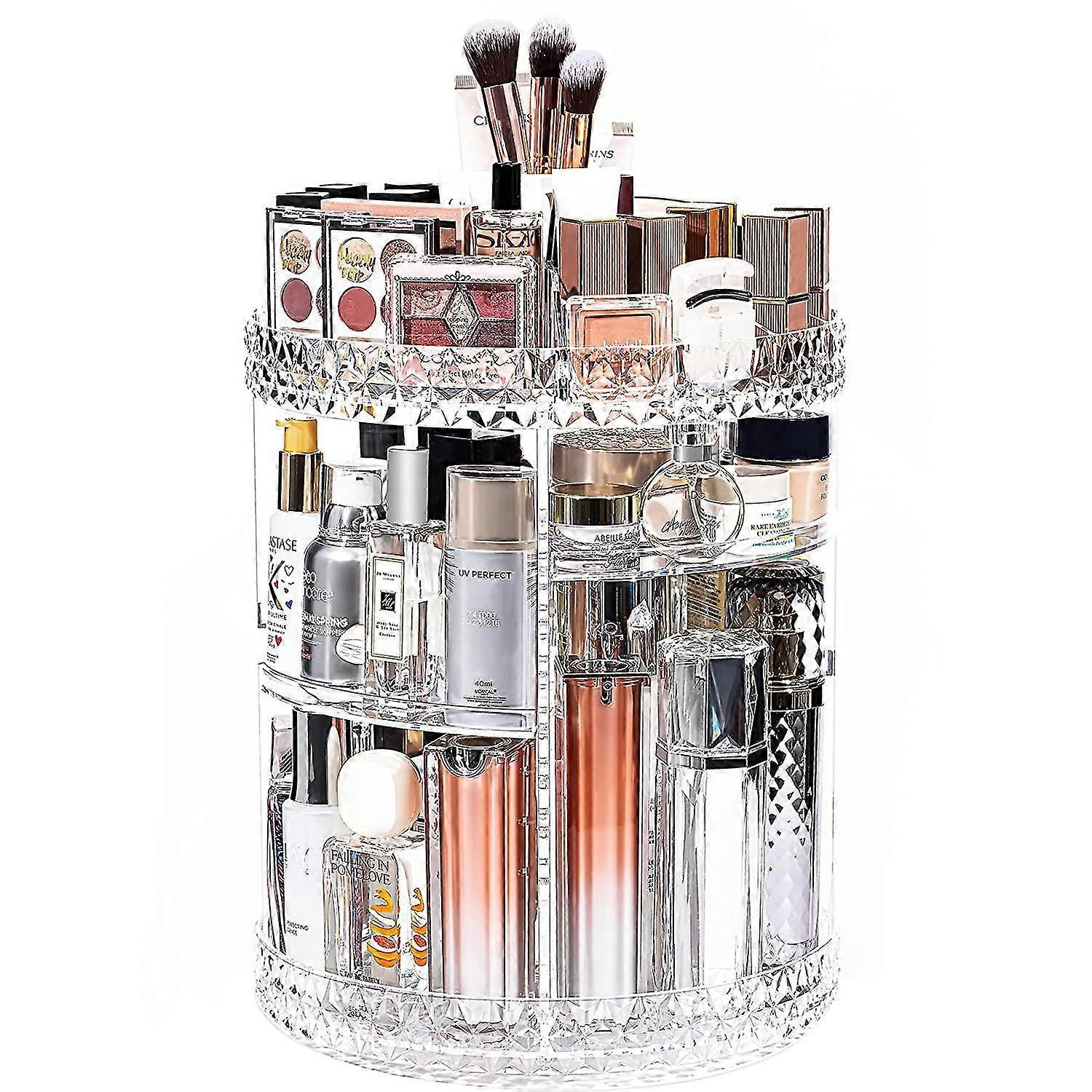 Makeup Organizer, 360 Degree Rotating Cosmetic Storage Organizer, Adjustable Makeup Display Case, Fits Jewelry Makeup Brushes And Lipsticks, Clear Acr