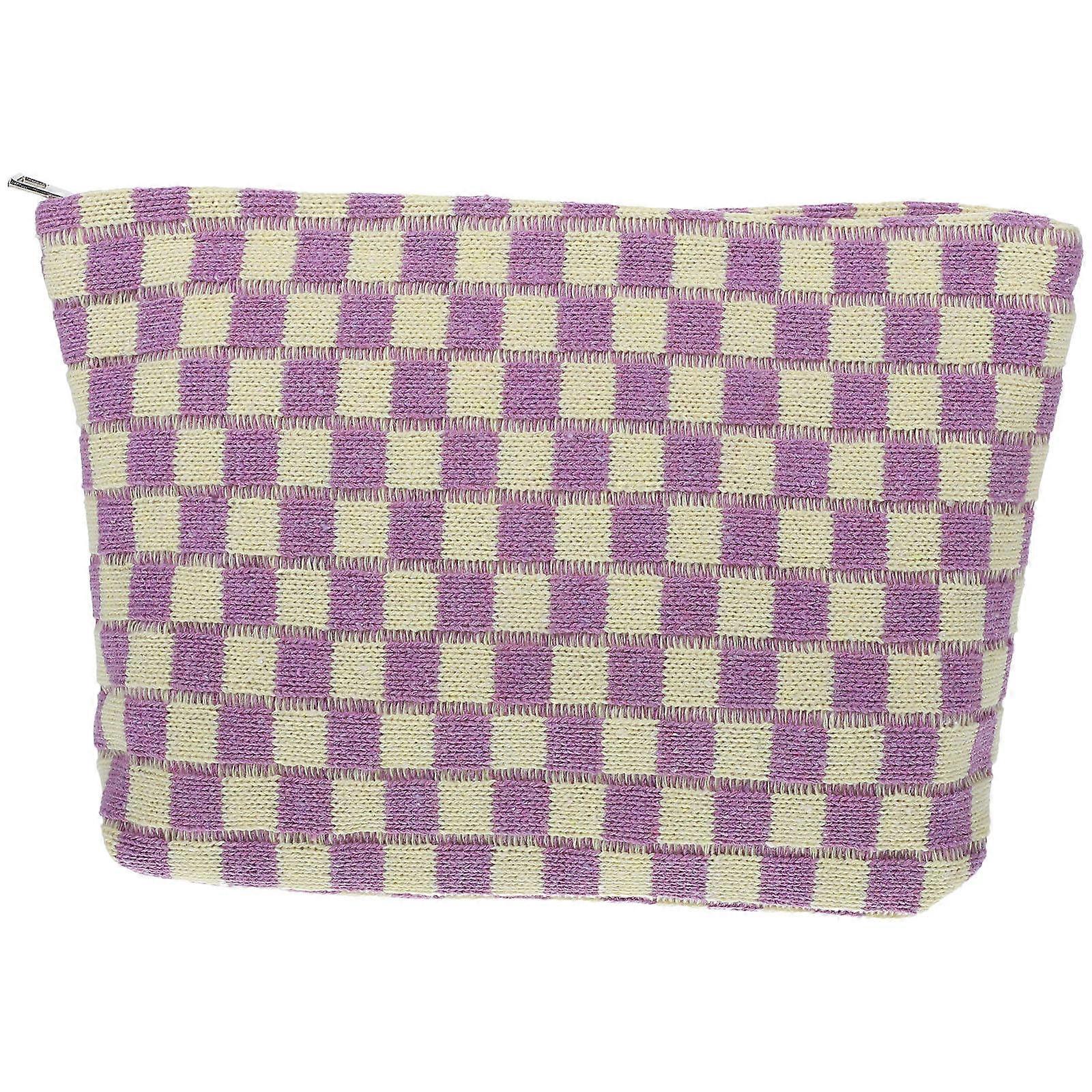 Makeup Organizer Travel Clear Square Makeup Bag Purple Yellow Checkered 10.2×7.5×1.2in 1Set