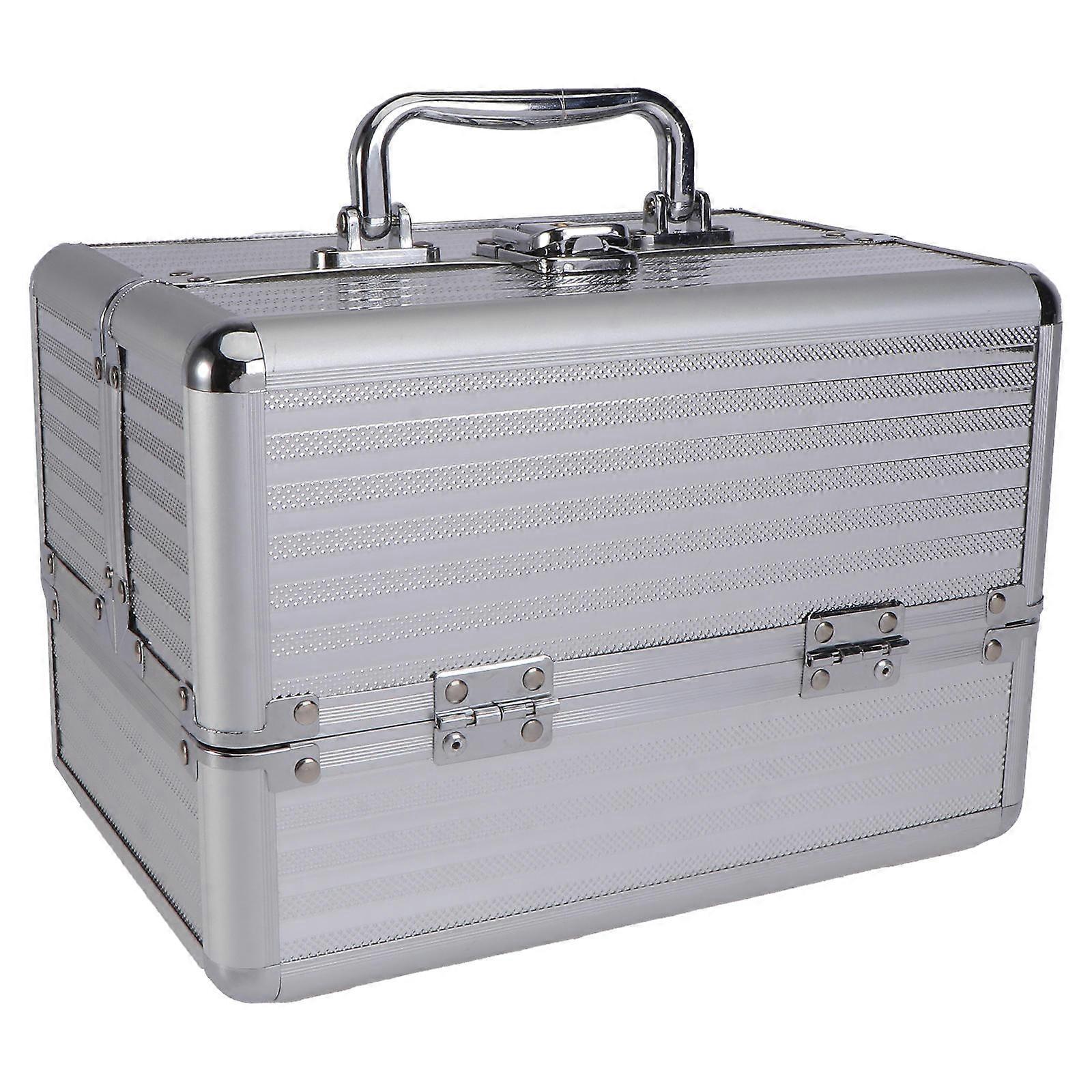 Makeup Organizer Travel Case Professional Cosmetic Box Silver with Red Lining 25.00X17.00X17.00CM Storage Household Use 1Pcs