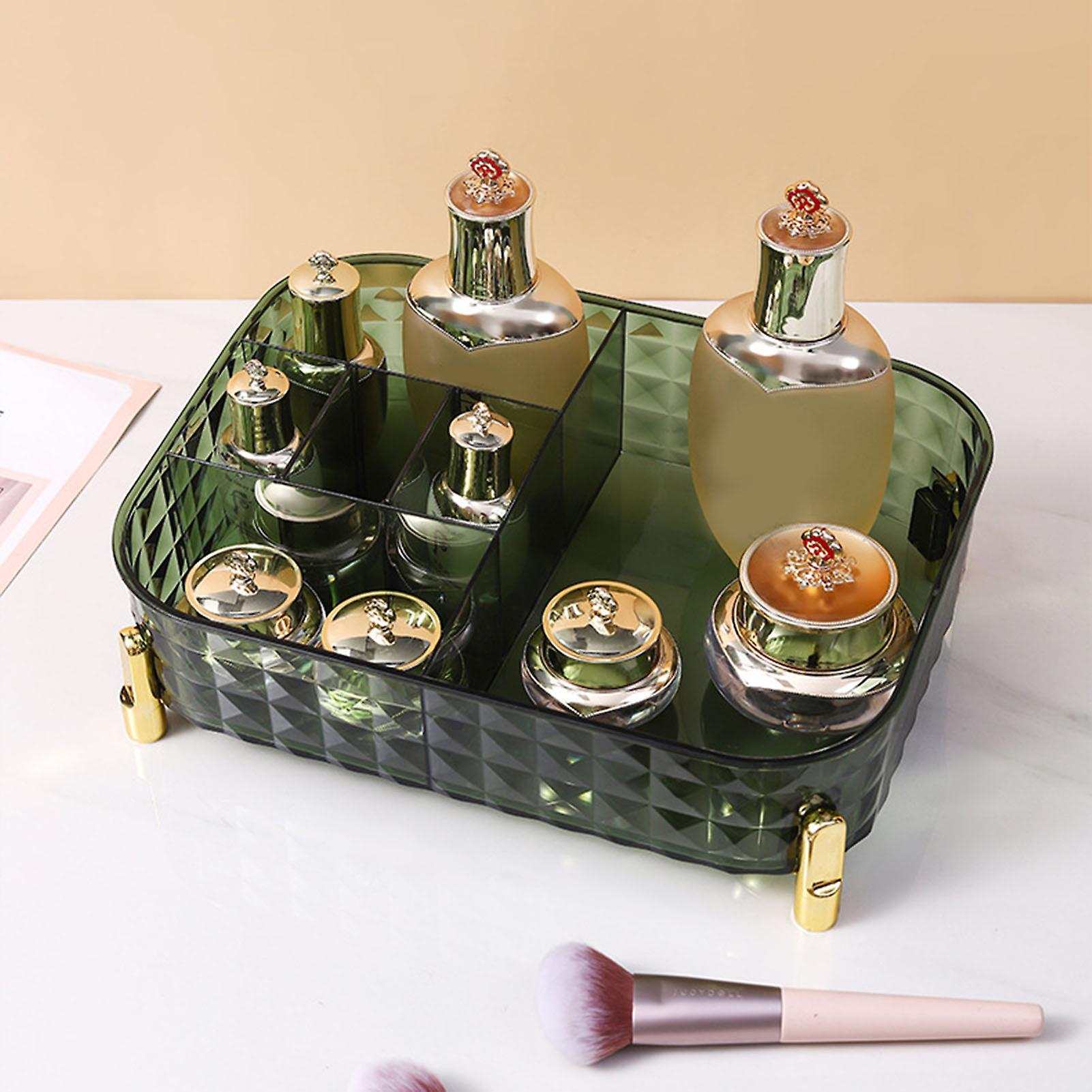 Makeup Organizer Tray Large Capacity Countertop Storage Case for Brushes Lipsticks Skincare Green