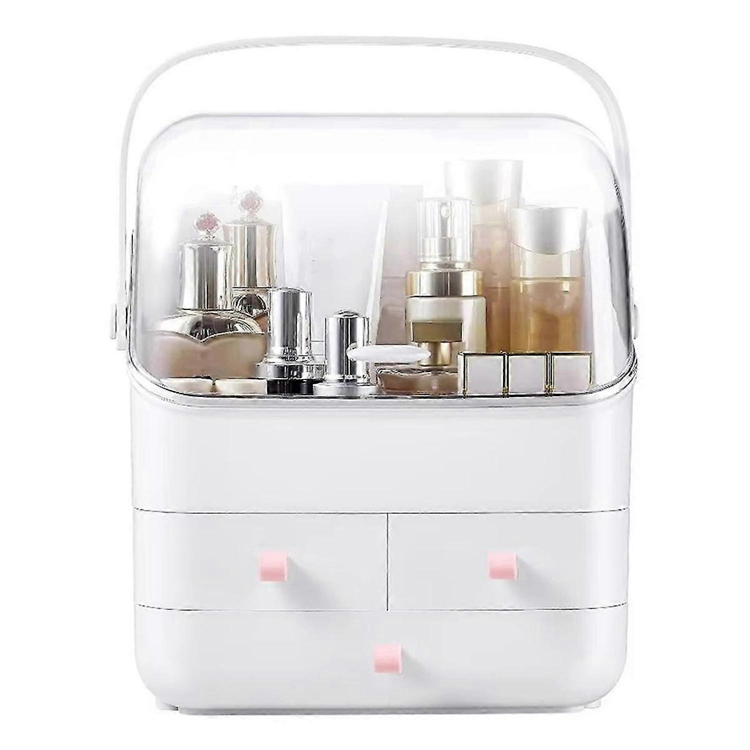 Makeup Organizer Holder Cosmetic Storage Box with Dust Free Cover Portable Handle,Fully Open Waterproof Lid, Dust Proof