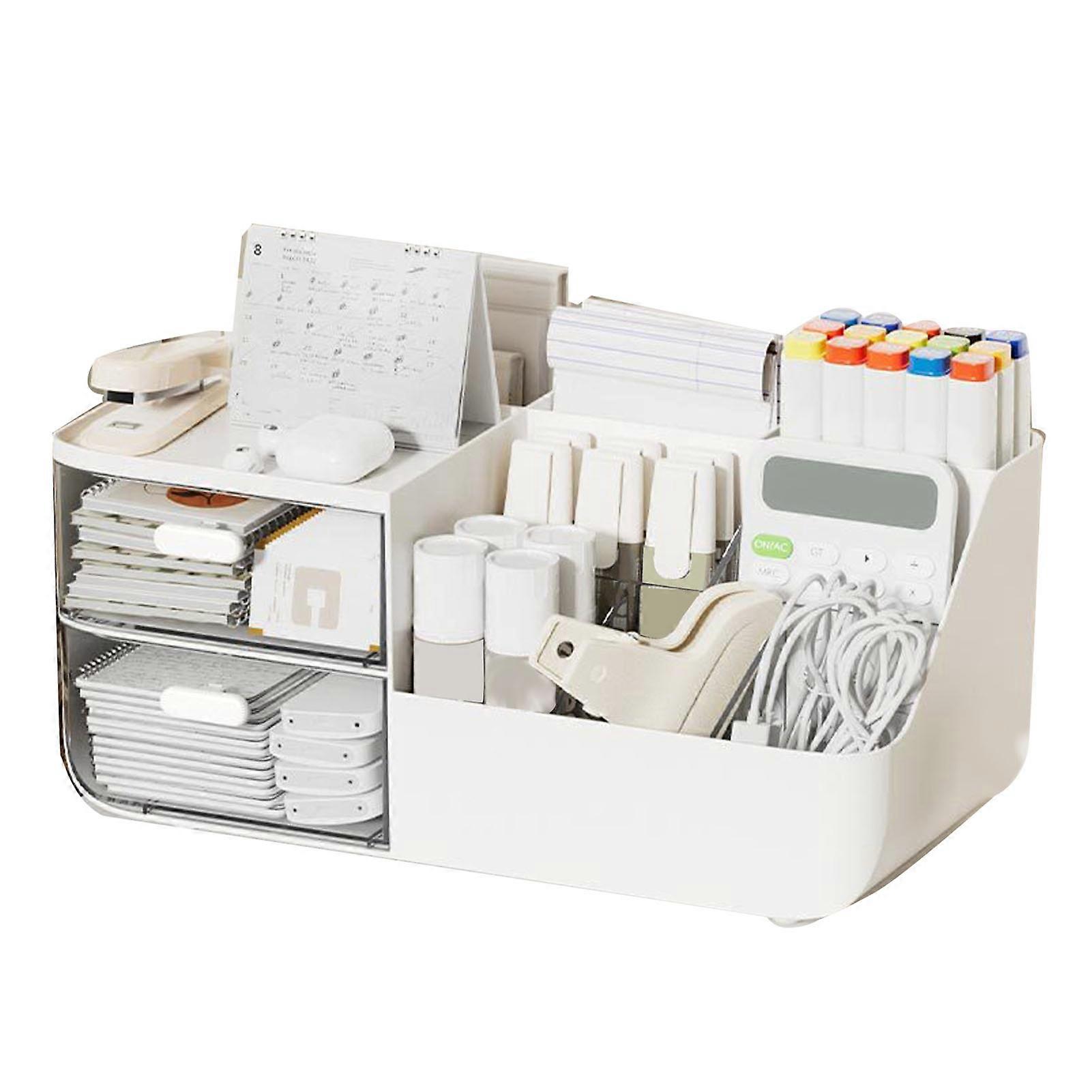 Makeup Organizer Multifunctional Skincare Cosmetic Storage with 2 Drawers for Vanity Desktop White