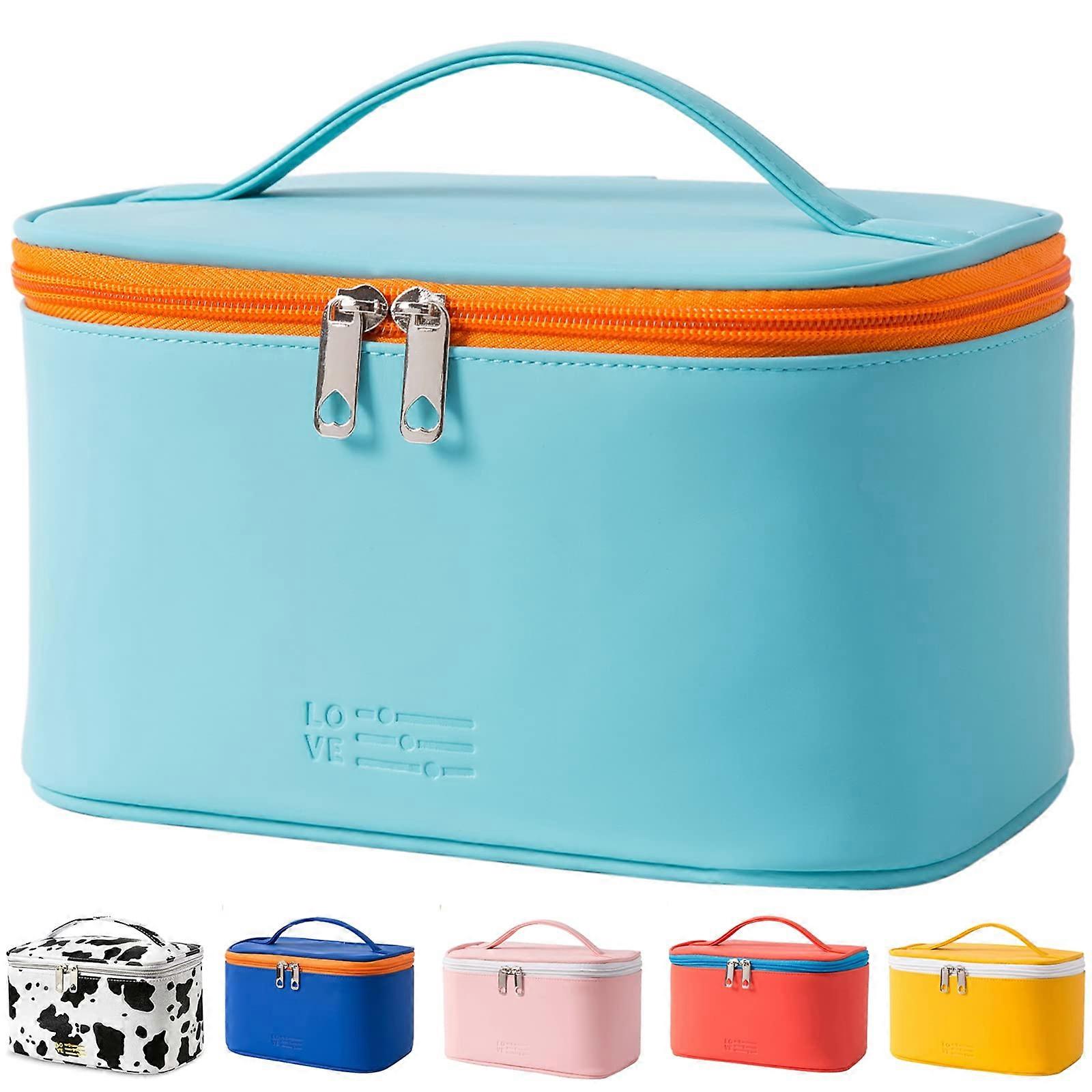 Makeup Bag Travel Cosmetic Organizer, Leather Washable Beauty Zipper Pouch in Light Blue for Women
