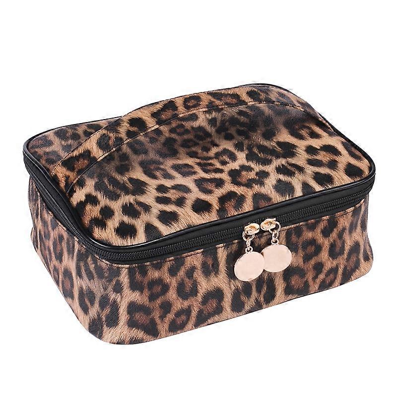 Makeup Bag Leopard Compartment Faux Leather Lightweight Multi-function Travel Cosmetic Case for Vacation KAESI