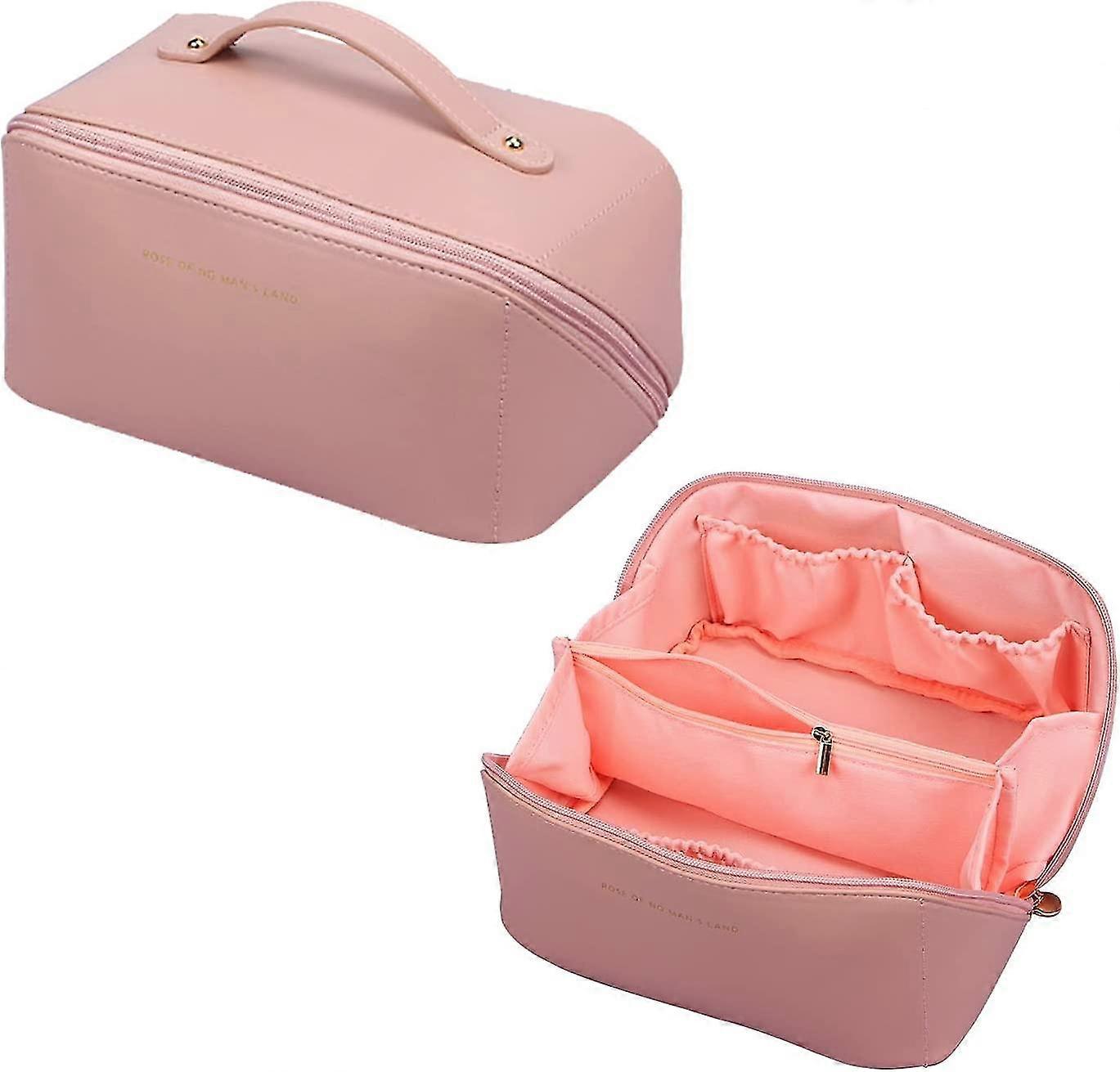 Makeup Bag Women Large Capacity Toiletry Bag With Handle, Waterproof Pu Makeup Bag Cosmetic Bag For Women Men Cosmetic Organizer(pink)